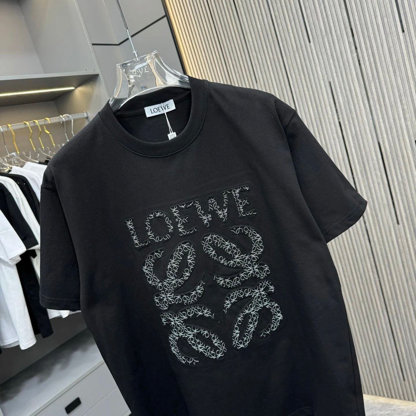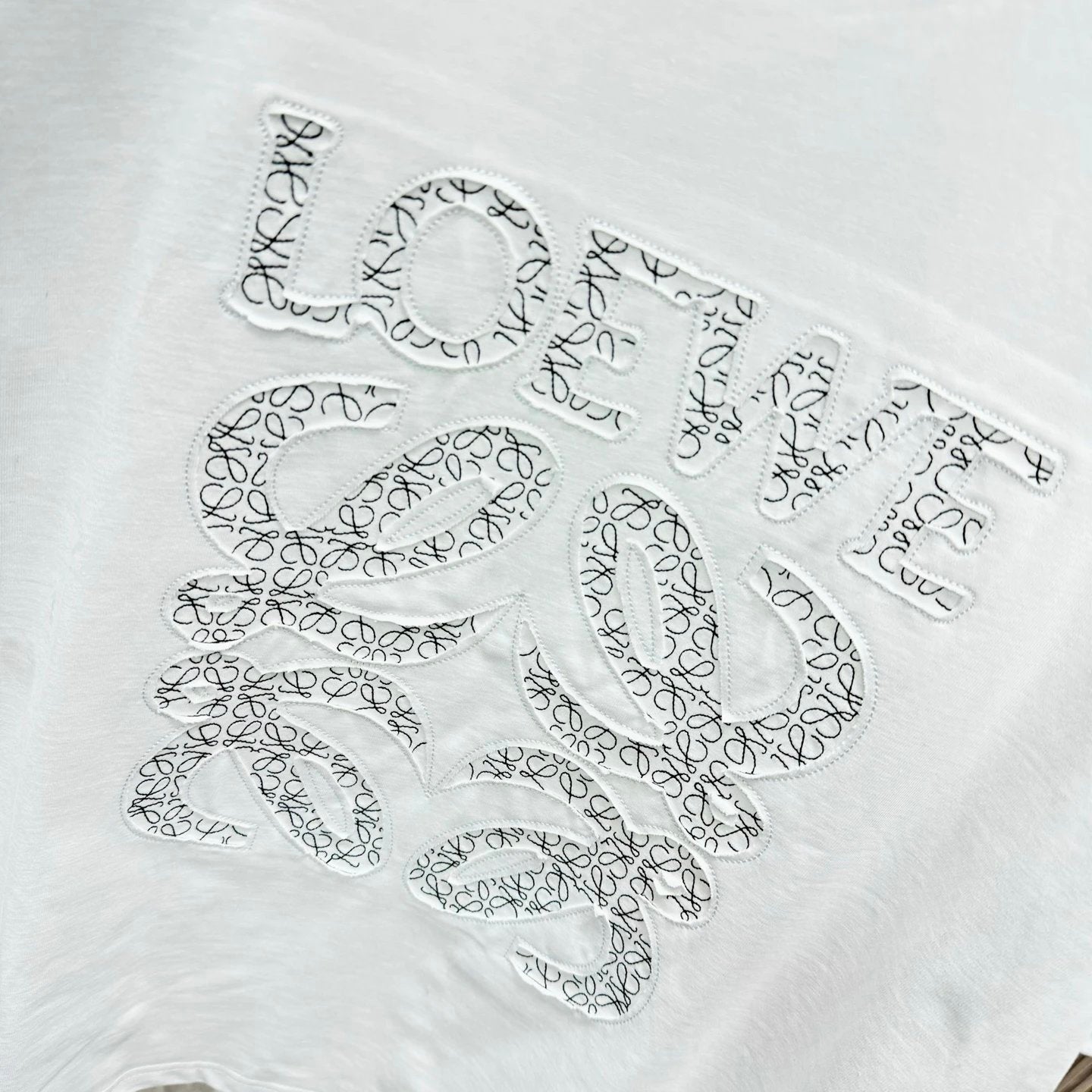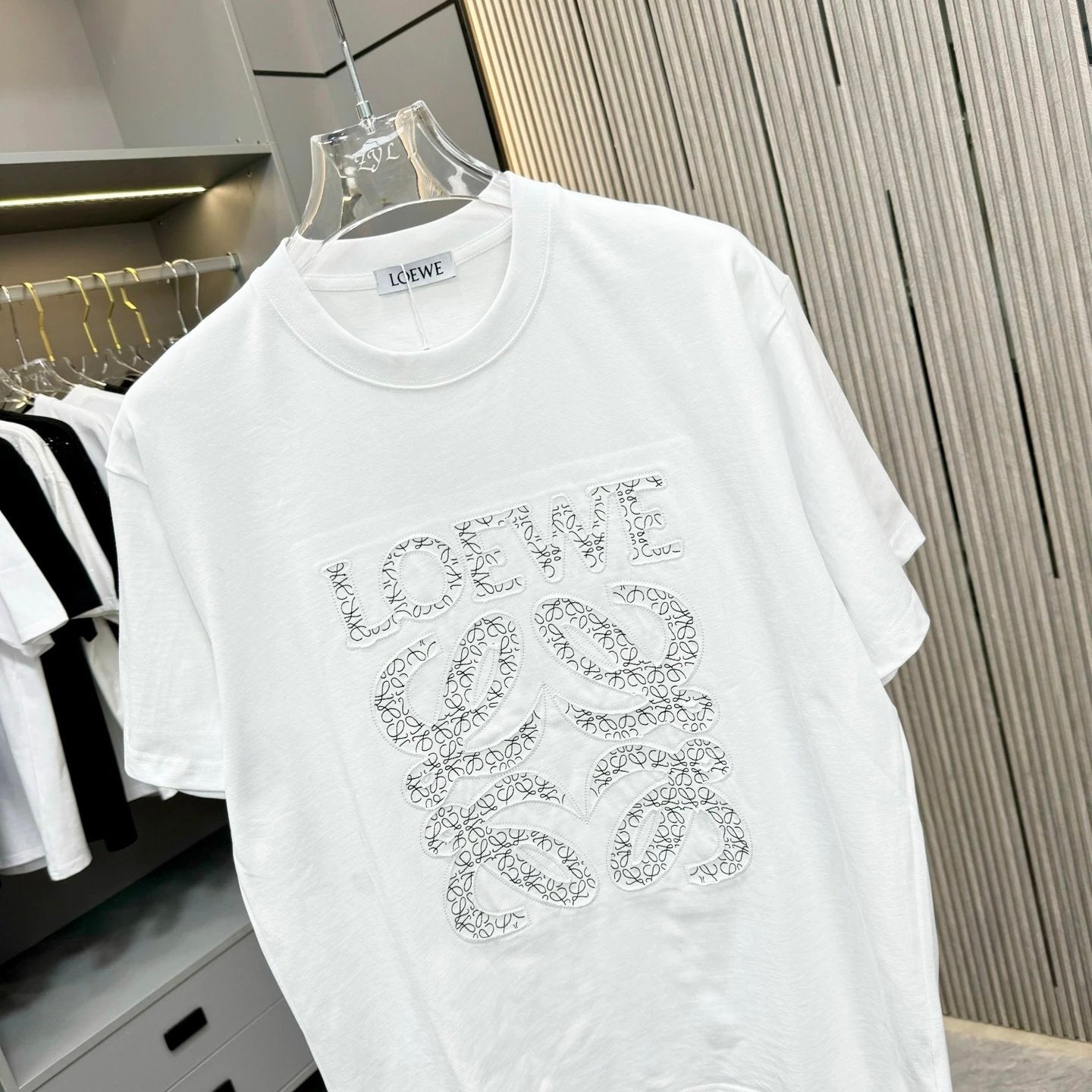 LOEWE T-shirt Dot Print with Leather Appliqué Embroidery Craft logo round Neck Short Sleeve25ss New Pure Cotton Unisex Style T T-shirt OS Loose Fit Base Shirt Half Sleeve T-Shirt Top Half Sleeve