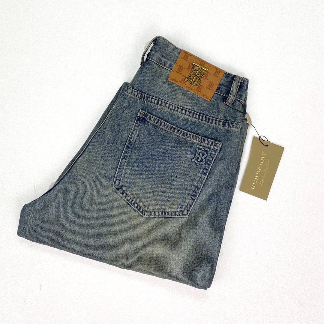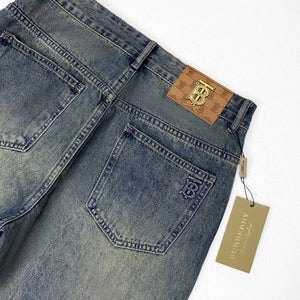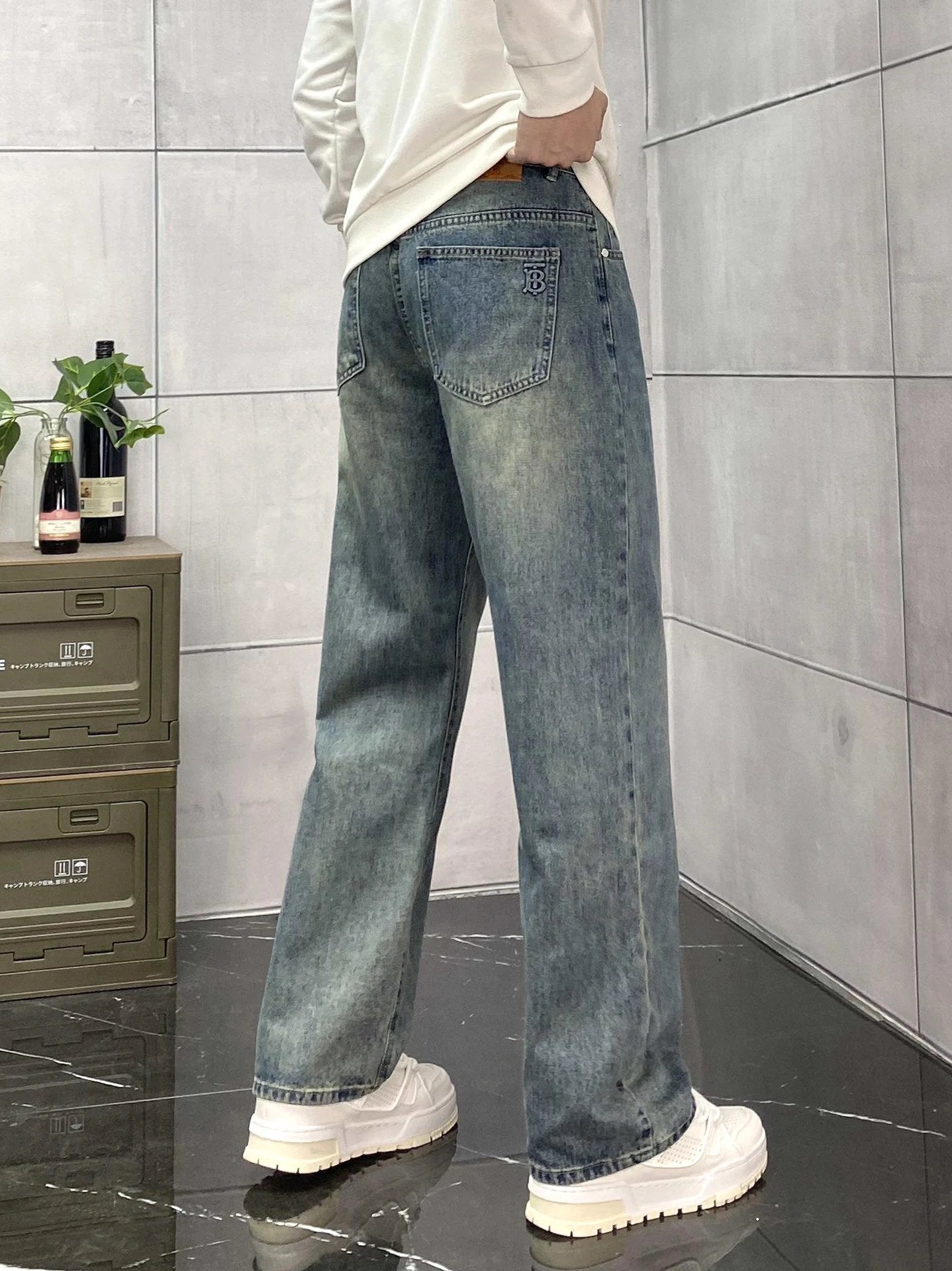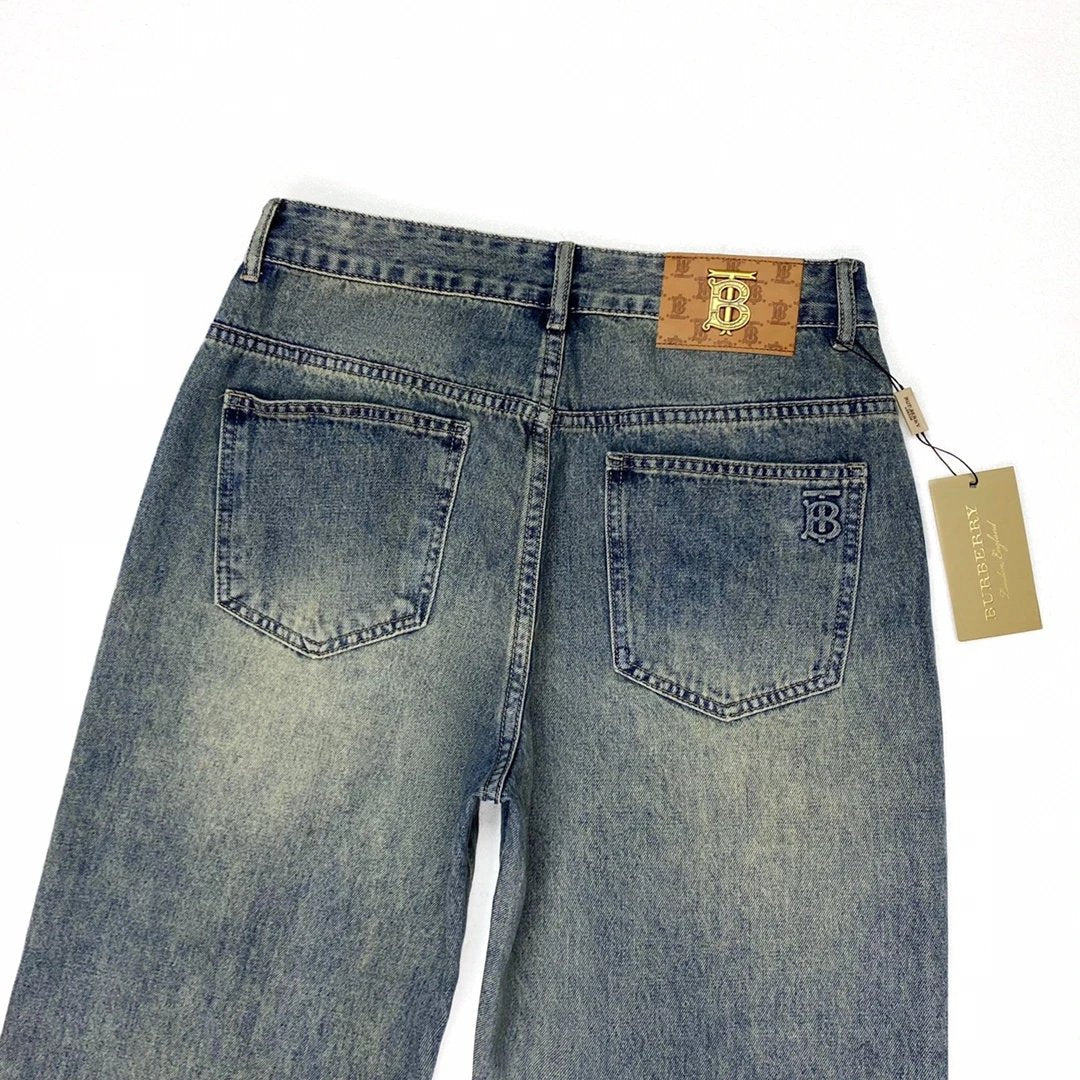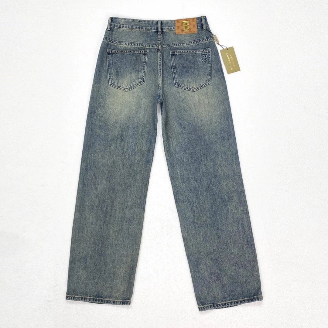 Burberry Jeans Double B Back Waist Leather Tag logo Straight Washed Blue Jeans Autumn Winter New Unisex Long Pants Loose Casual High Waist