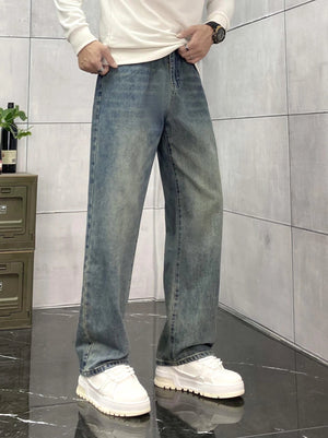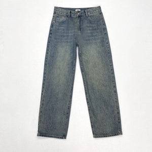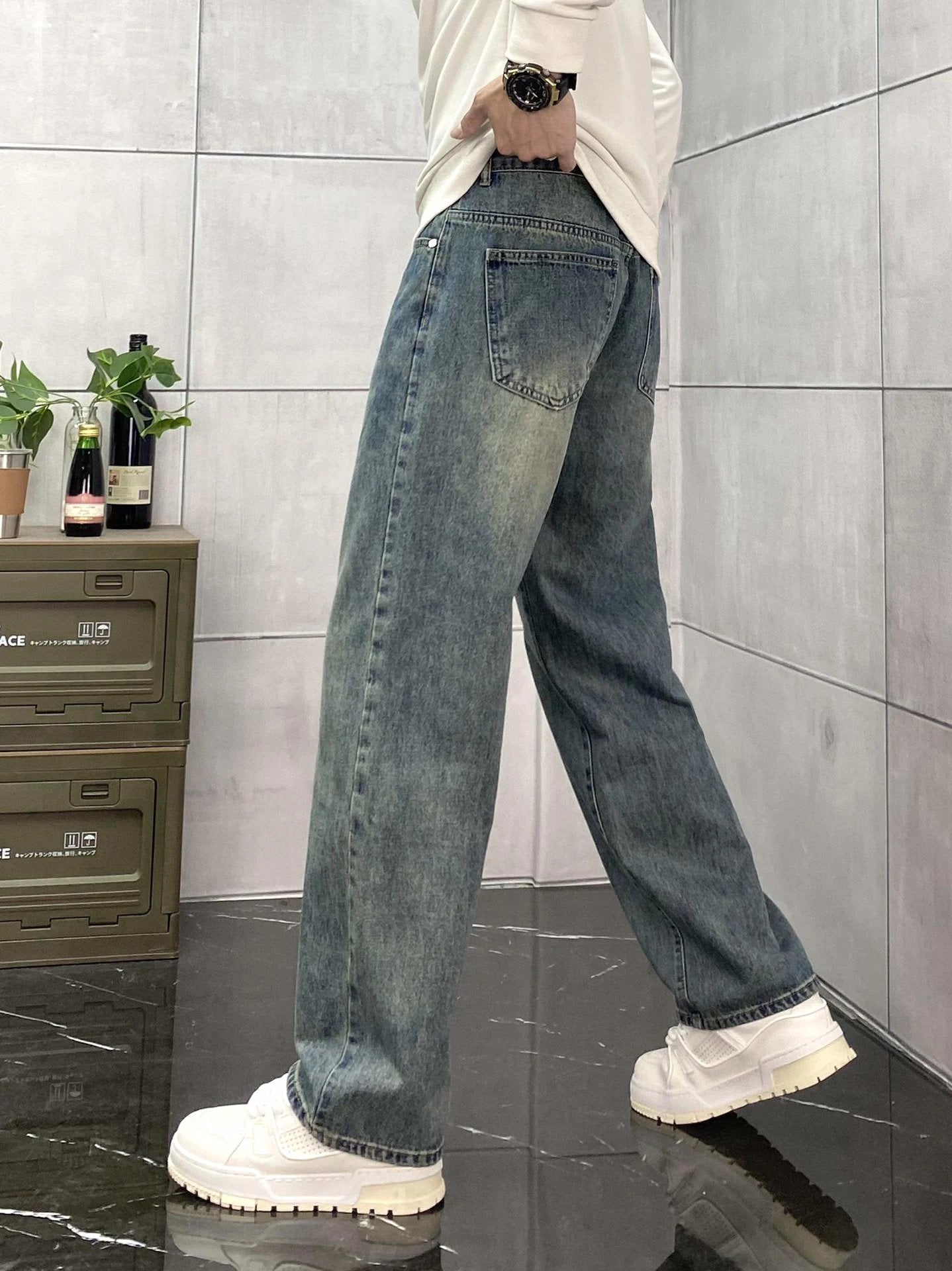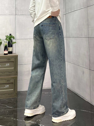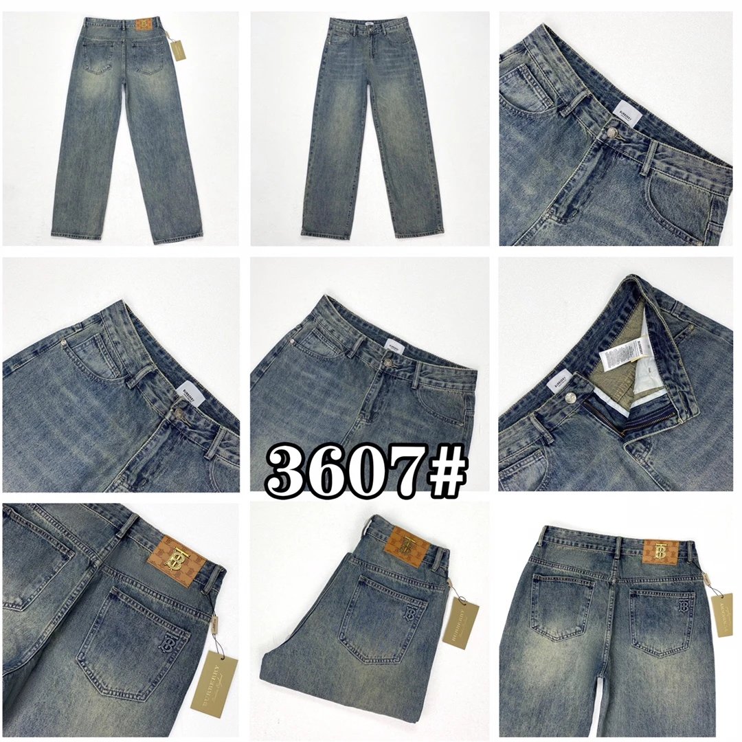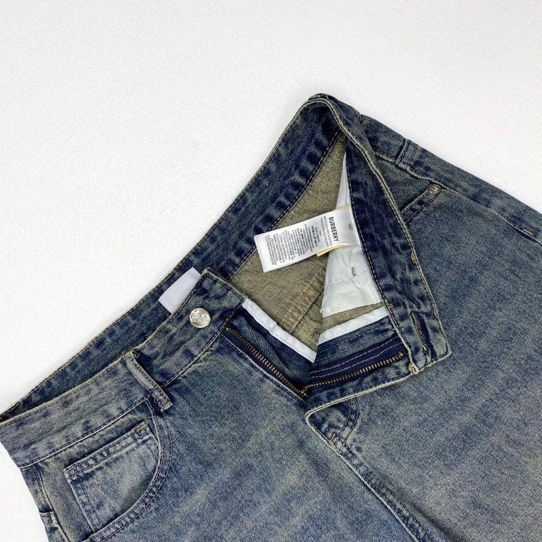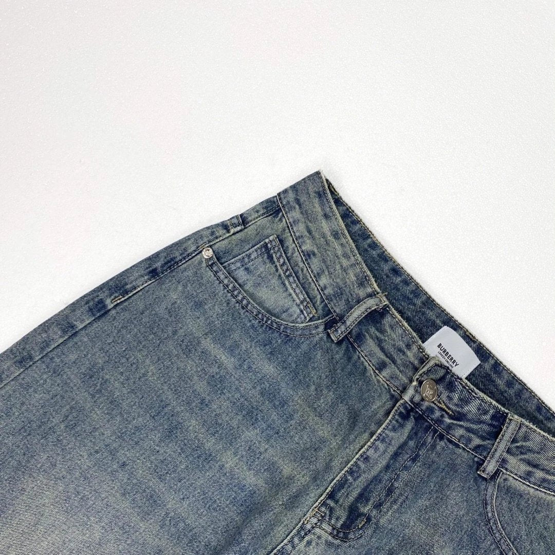 Burberry Jeans Double B Back Waist Leather Tag logo Straight Washed Blue Jeans Autumn Winter New Unisex Long Pants Loose Casual High Waist