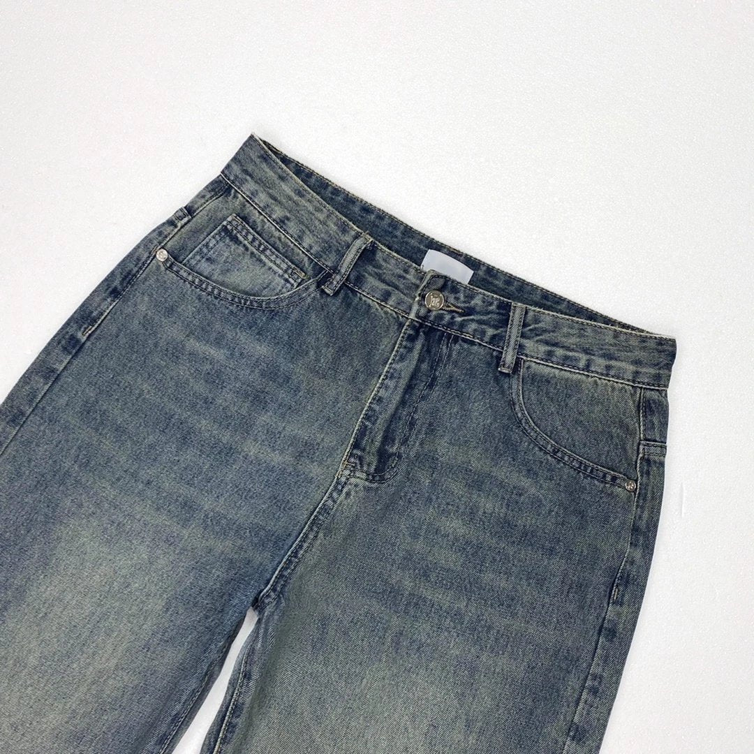 BBR Burberry Double B Waistband Logo Straight Washed Blue Jeans Autumn Winter New Unisex B Parent Pants Loose Casual High Waist