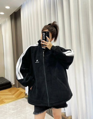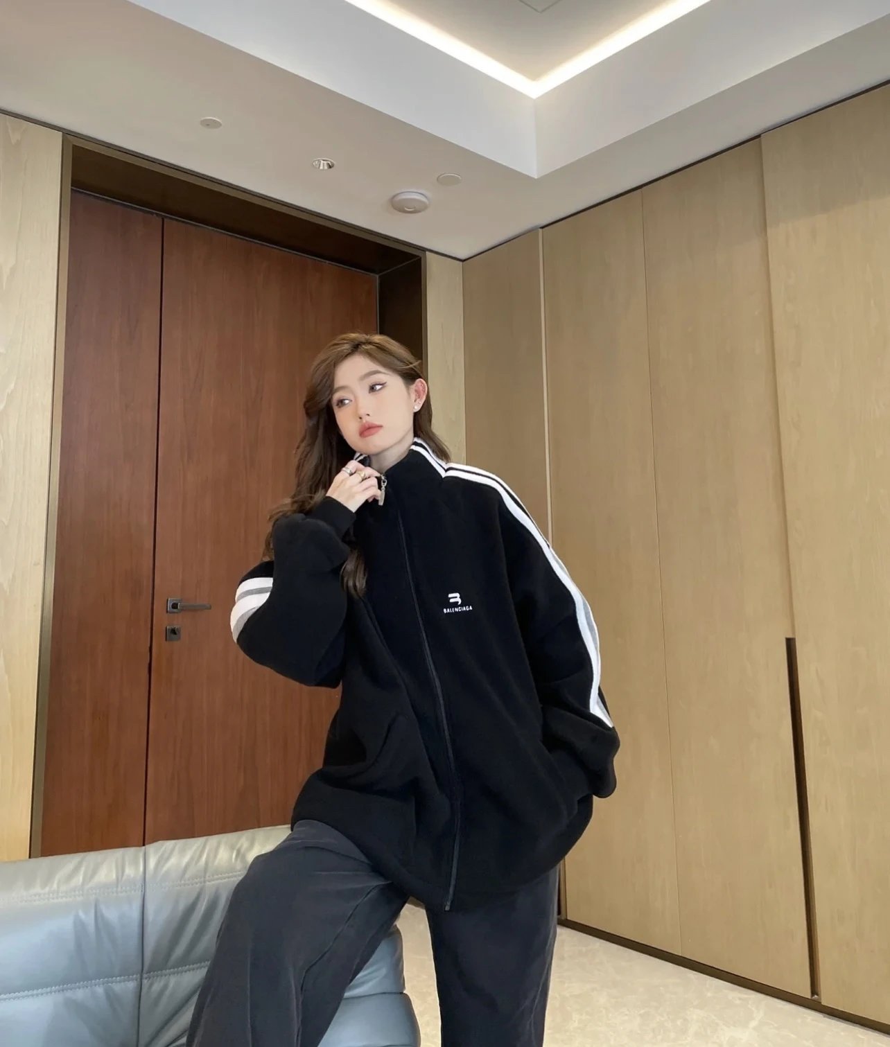 Balenciaga / Paris Saint-Germain Blcg 24FW Double Hook Embroidery Striped Patchwork Fleece Jacket Correct Version