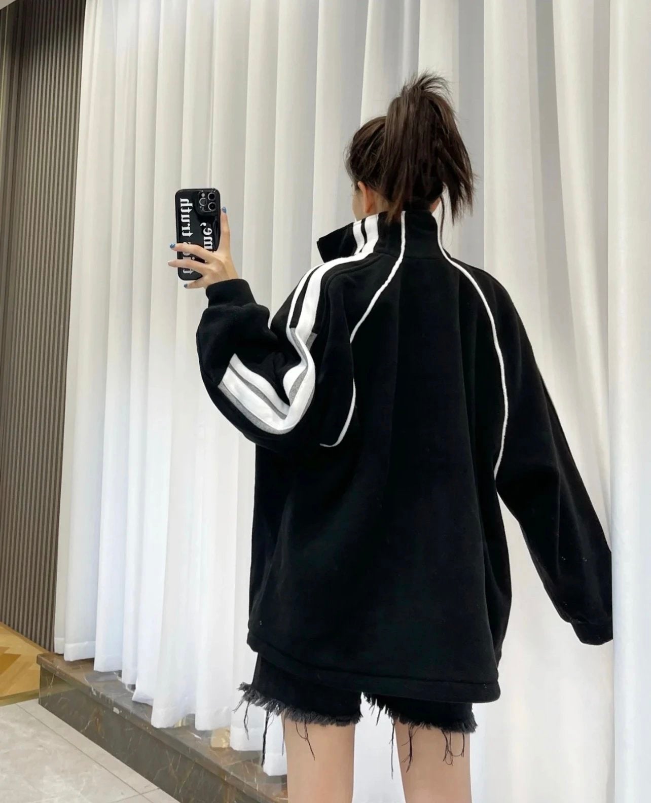 Balenciaga Down Jacket Double Hook Embroidered Striped Patchwork Fleece Jacket Casual Loose Stand Collar Warm Thickened Cotton Coat Unisex os Version24ss New Winter Products