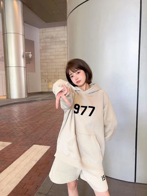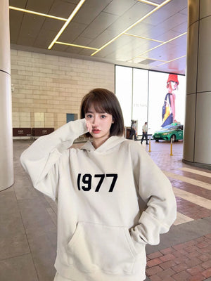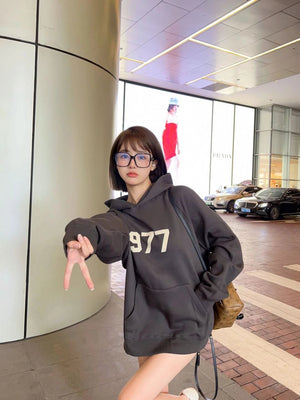 ESSENTIALS Hoodie Double Line High Street1977Digital Flocking Hooded Sweater for Men and Women