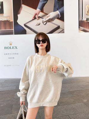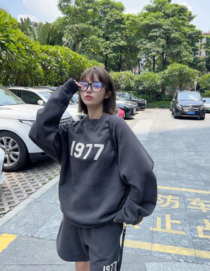ESSENTIALS Hoodie Double Line High Street1977Digital Flocking round Neck Sweater for Men and Women