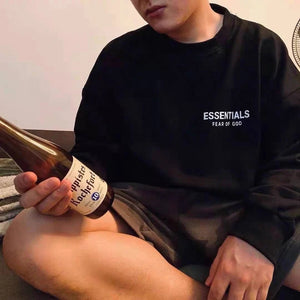 ESSENTIALS Hoodie Double Line Special-Interest Fashion Brand American High Street Loose Brushed Hoody Male