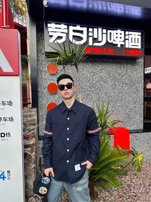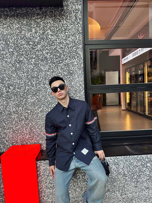 Thom Browne Shirt Double Sleeve Ribbon Jacket Shirt for Men and Women