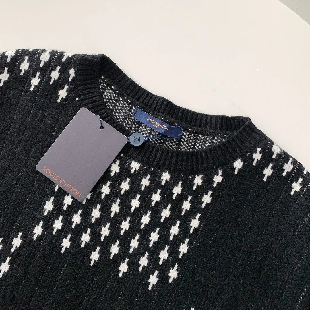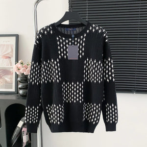 Louis Vuitton LV Sweater Double Thread Jacquard Round Neck Sweater25ss Spring New Thickened Long Sleeve Pullover Unisex OS Loose Fit Top Versatile Casual Jacket Lazy Style