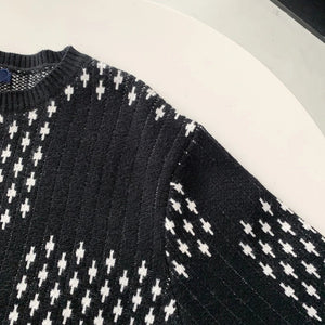 Double Line Jacquard Round Neck Sweater 25ss Spring New Long Sleeve Pullover Unisex Thickened OS Fit Loose Top Versatile Casual Coat Lazy Style