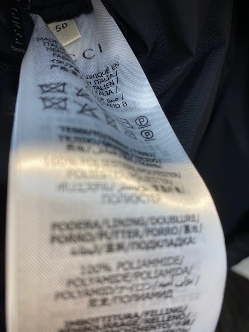 Double G Full LOGO Hooded Down Jacket This zip-up down jacket is part of the newly launched accessory and ready-to-wear series Made from recycled nylon using recyclable sewing threads and materials, featuring the brand's iconic GG pattern element.The fabric has a full gloss feel, perfectly developed from the original hardware version; truly an irreplaceable treasure. Filled with 90% white duck down, it will keep you warm this winter.Unisex