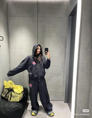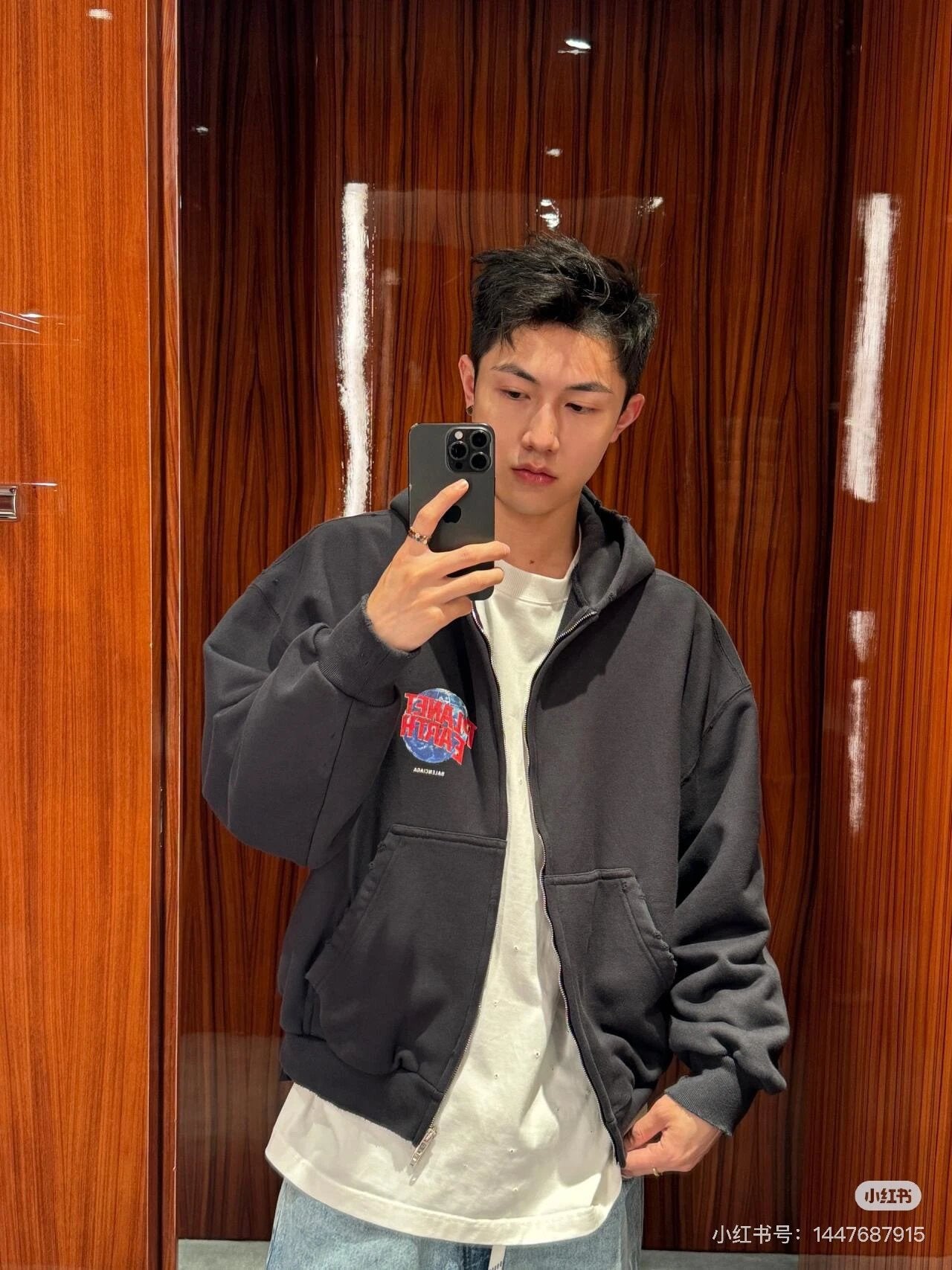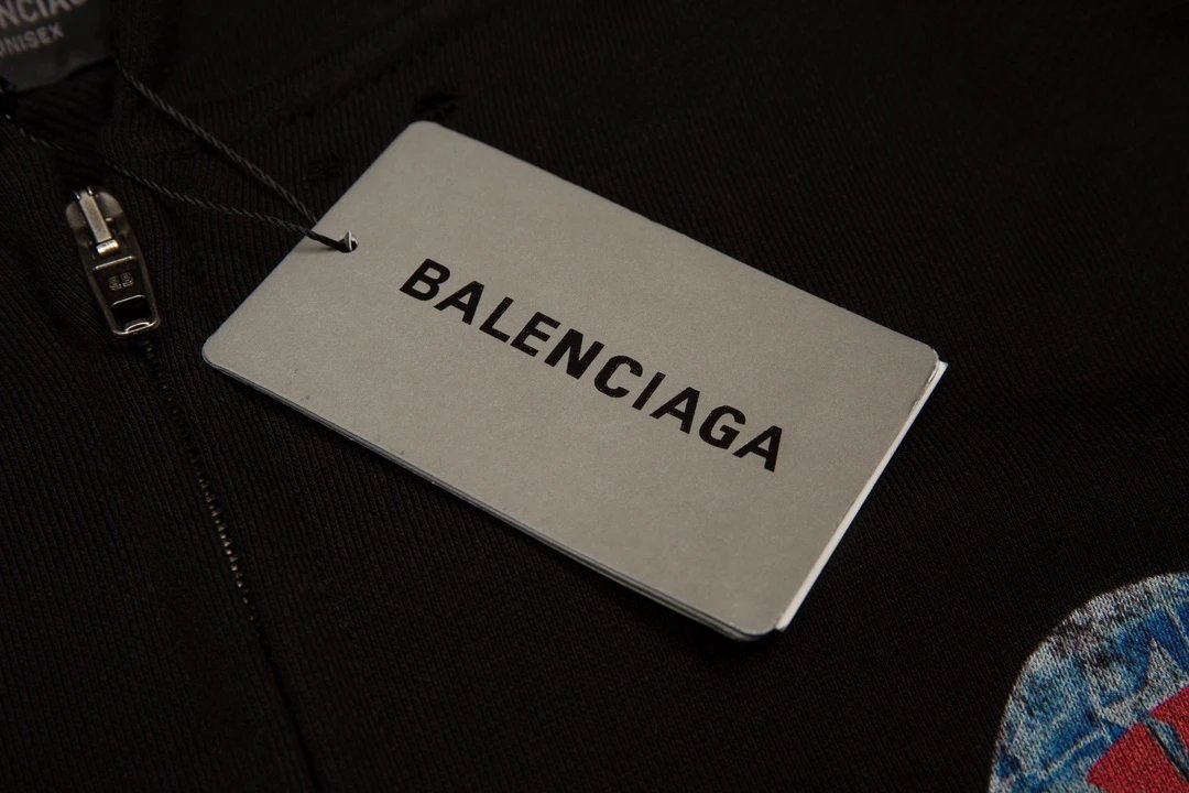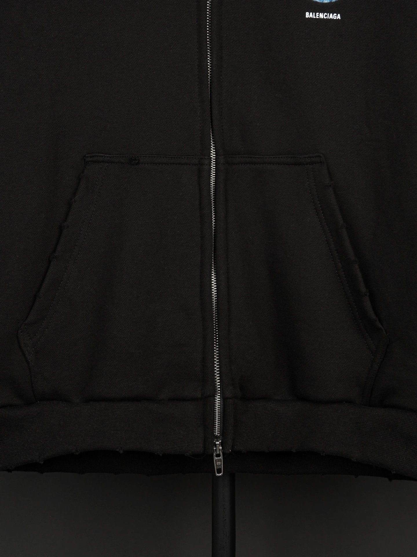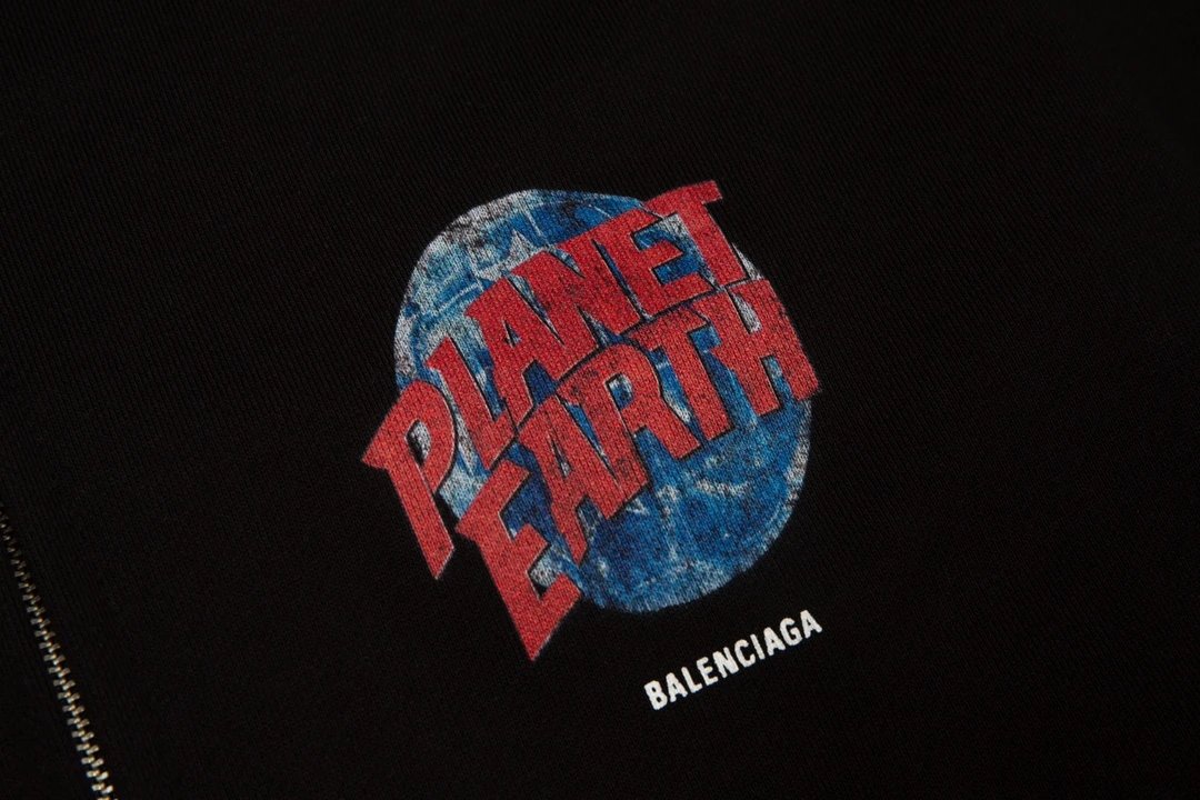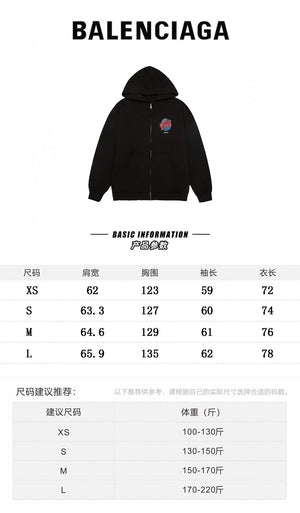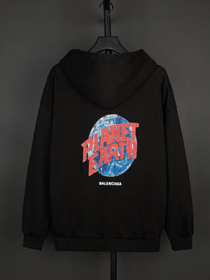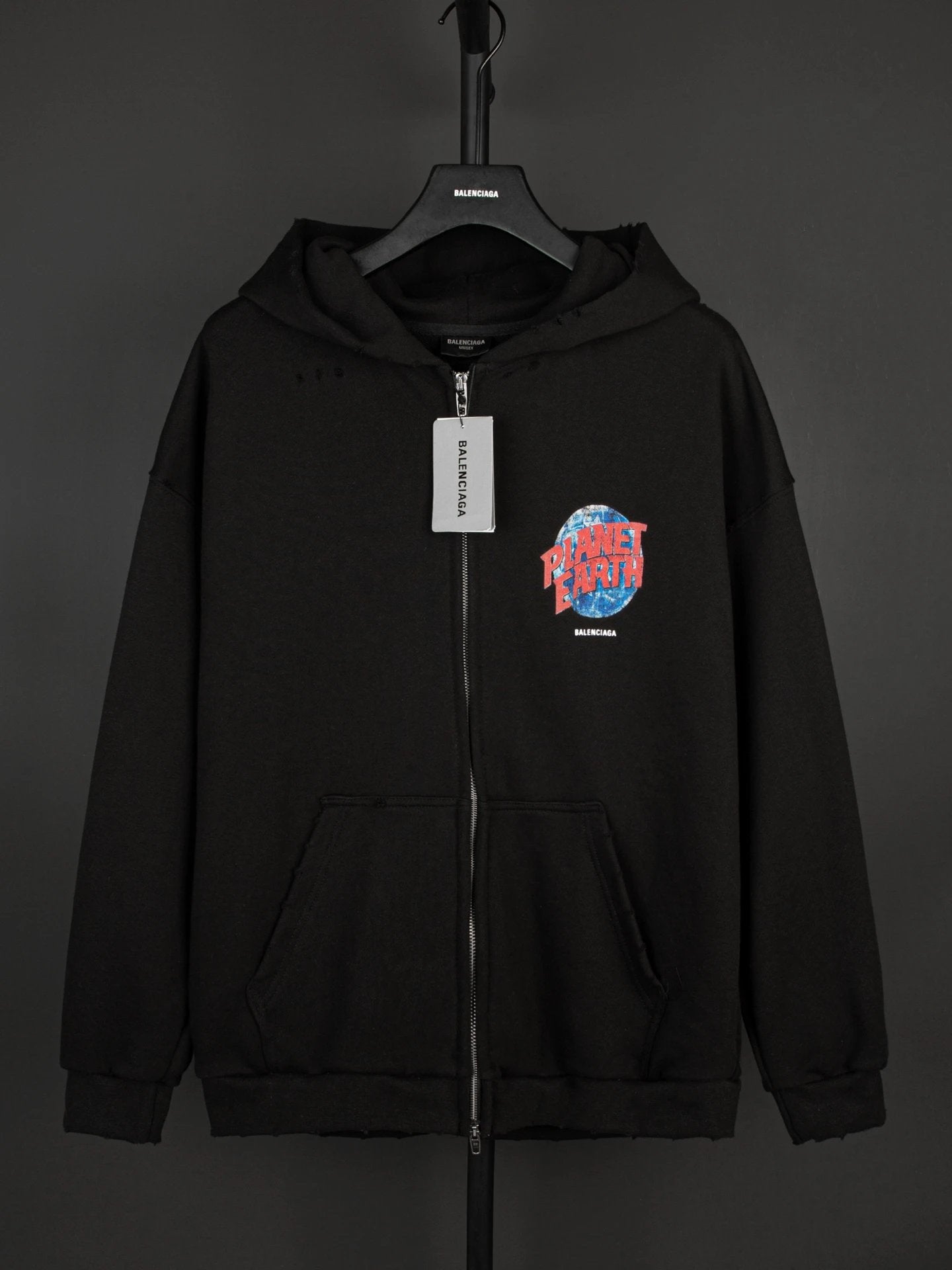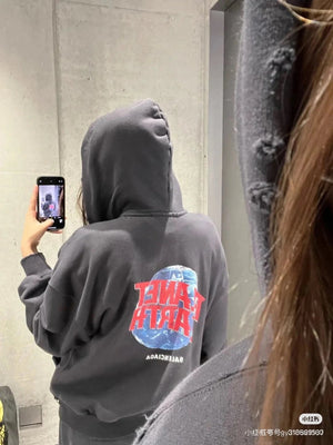 Balenciaga Hoodie Earth Print Casual Loose Zip-Up Hoodie Versatile Sweatshirt Os Unisex Cardigan Jacket24ss Autumn and Winter New Products