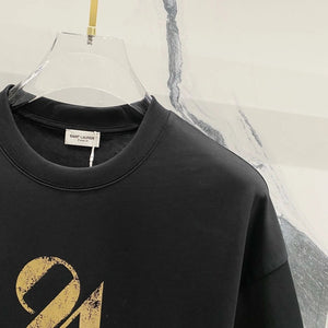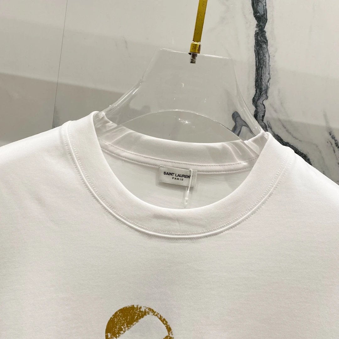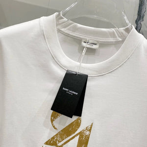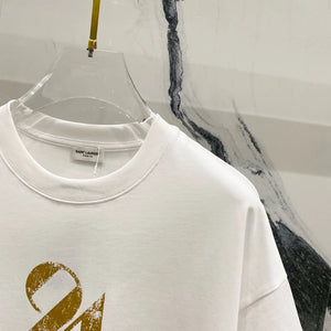 YSL T-shirt Embossed Chest24Number Digit Print logo round Neck Short Sleeve25ss New Pure Cotton Unisex Style T T-shirt OS Loose Fit Base Shirt Half Sleeve T-Shirt Top Half Sleeve