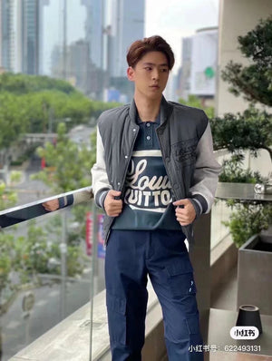 Louis Vuitton LV Down Jacket Embossed Cowhide Stitched Snap Button Leather Down Jacket Color Block Jacket Coat Unisex Autumn Winter New Sports Casual Loose Versatile