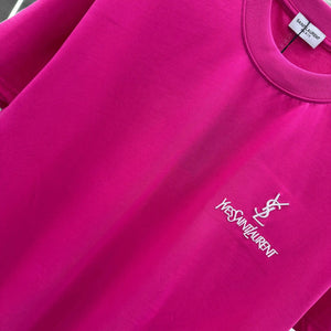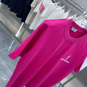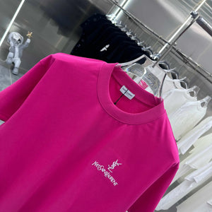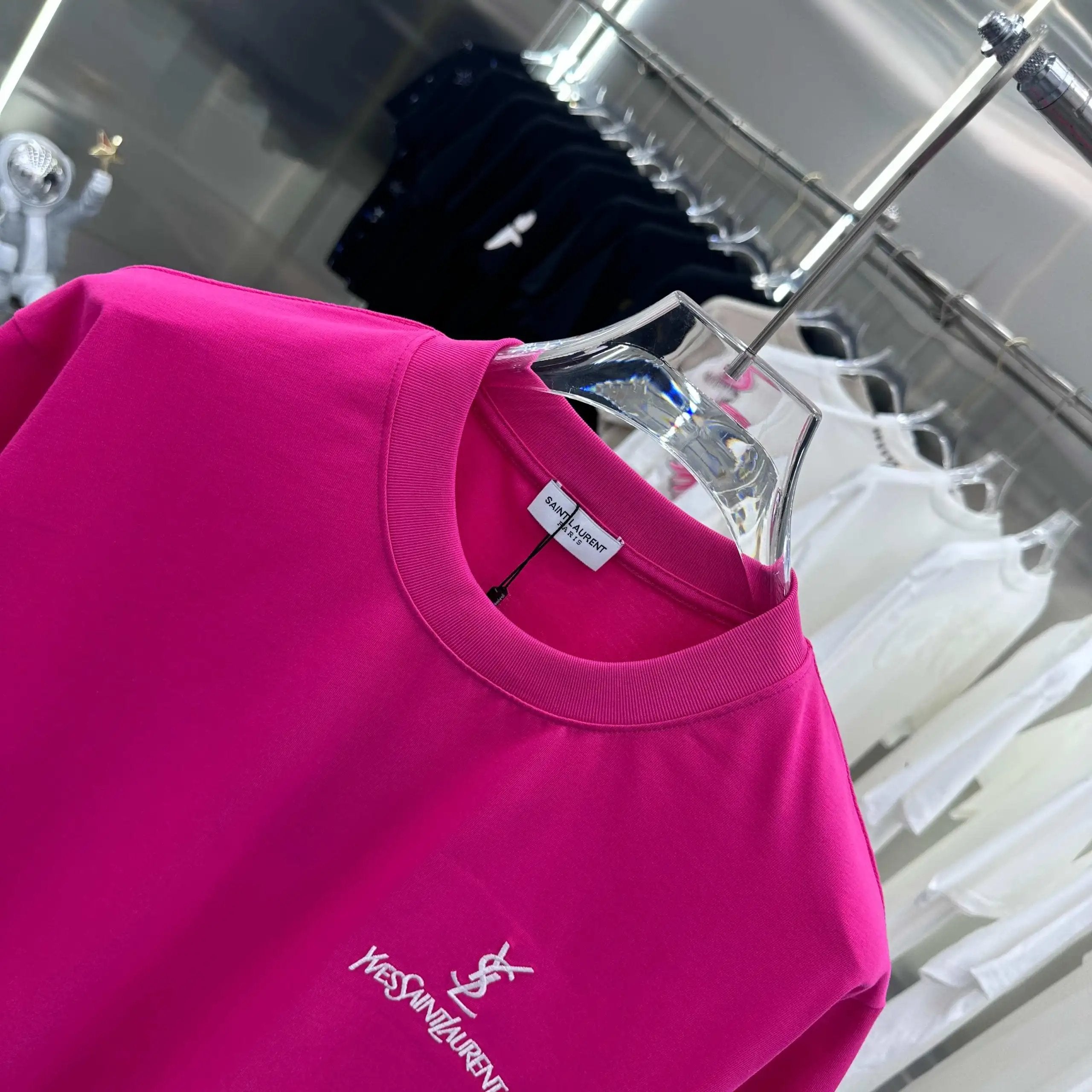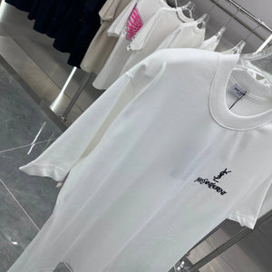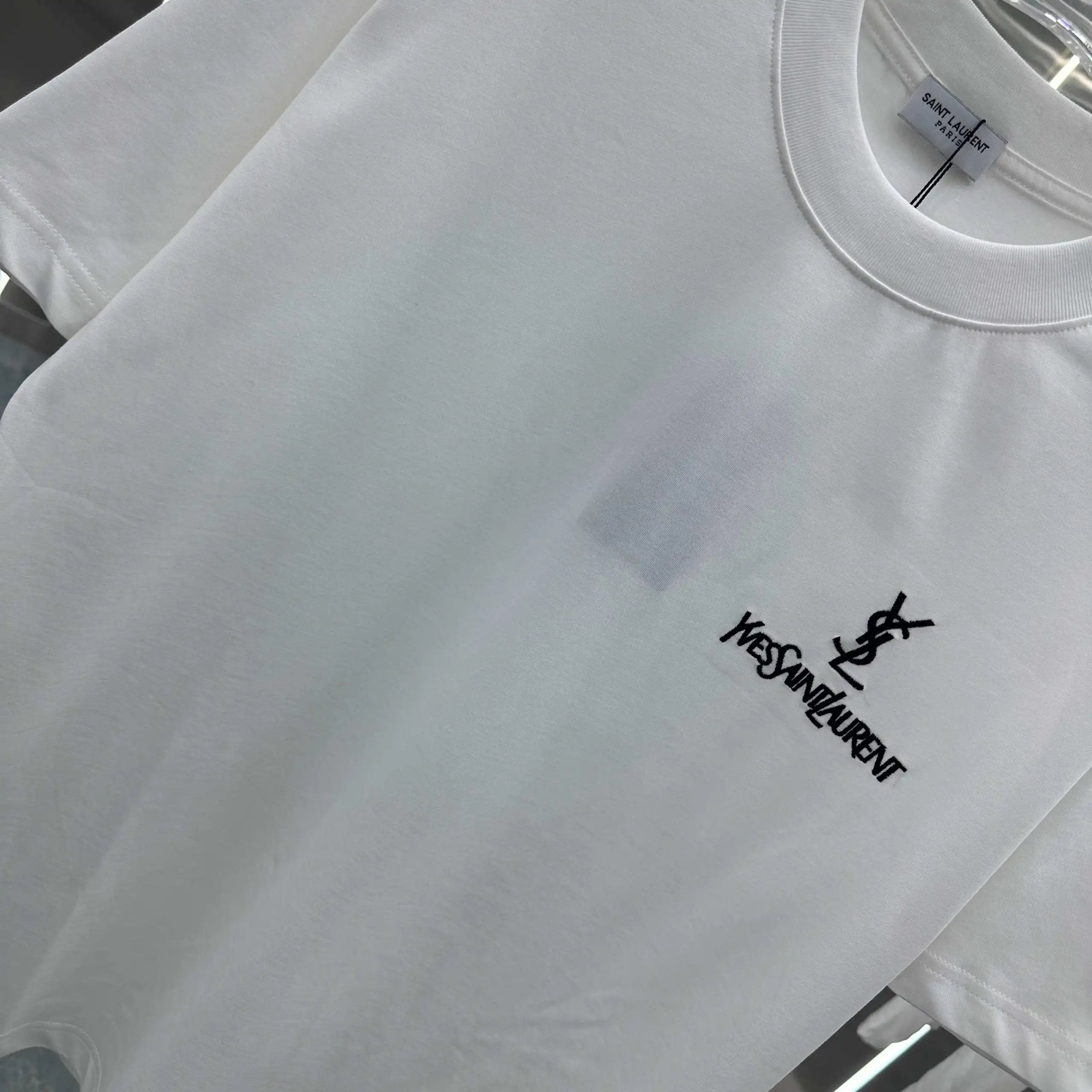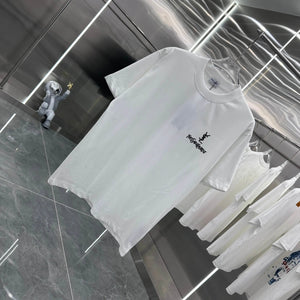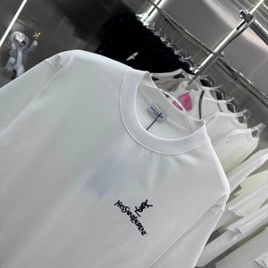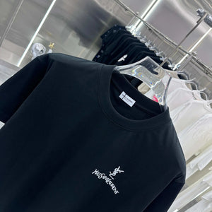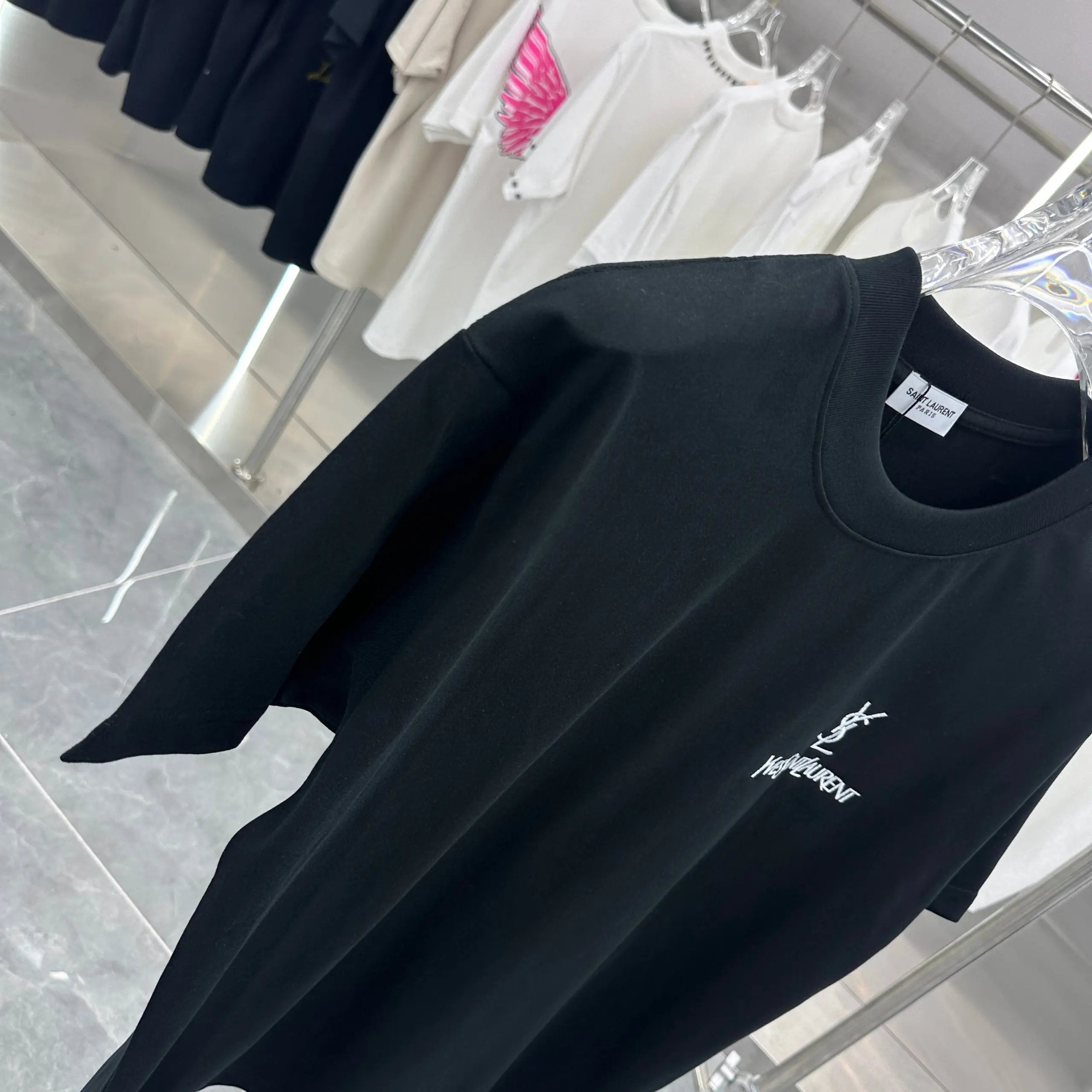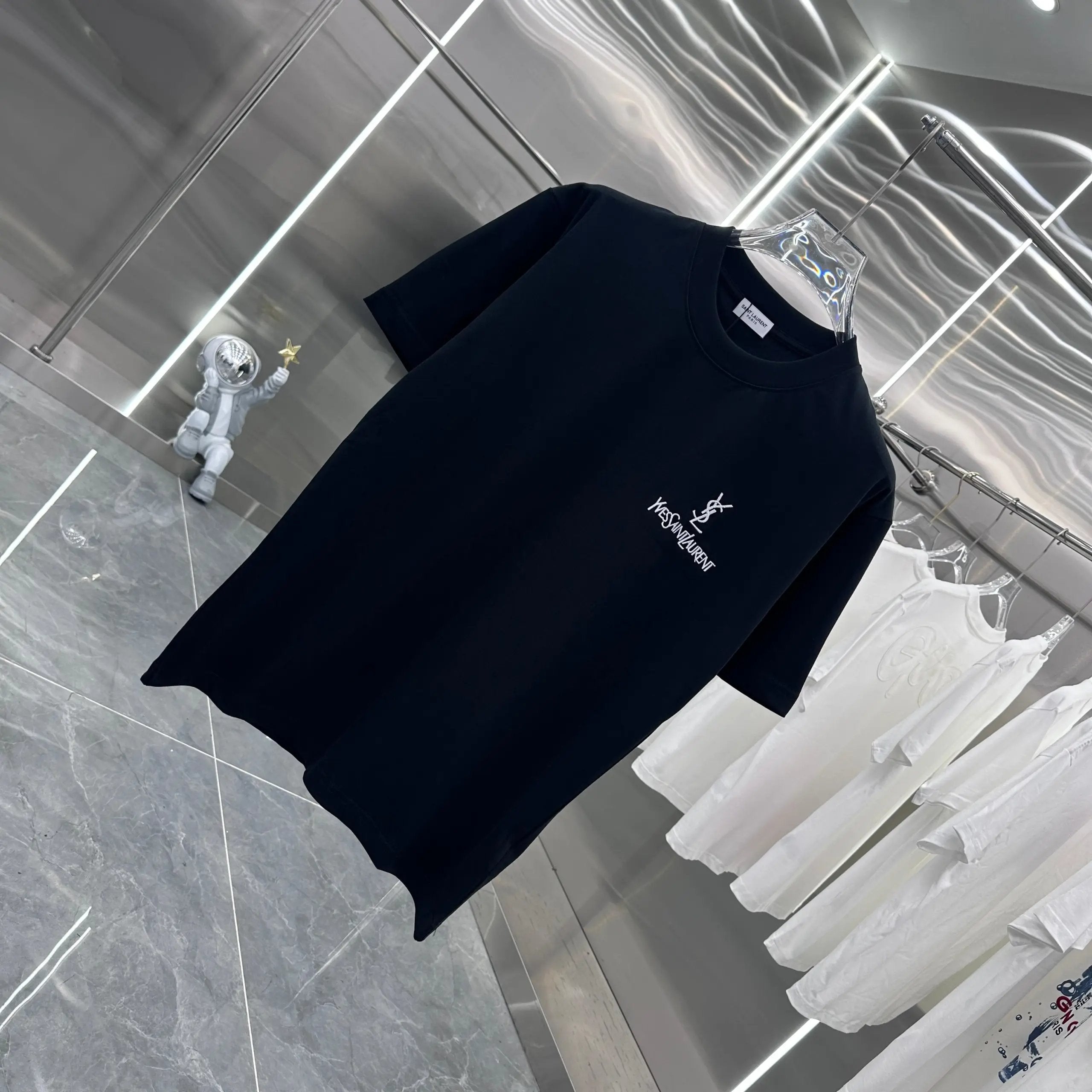 YSL T-shirt Embroidered Brand Logo on the Chest logo round Neck Short Sleeve25ss New Pure Cotton Unisex Style T Casual T-Shirt Base Layer Shirt OS Loose Fit Half Sleeve Top Plus Size