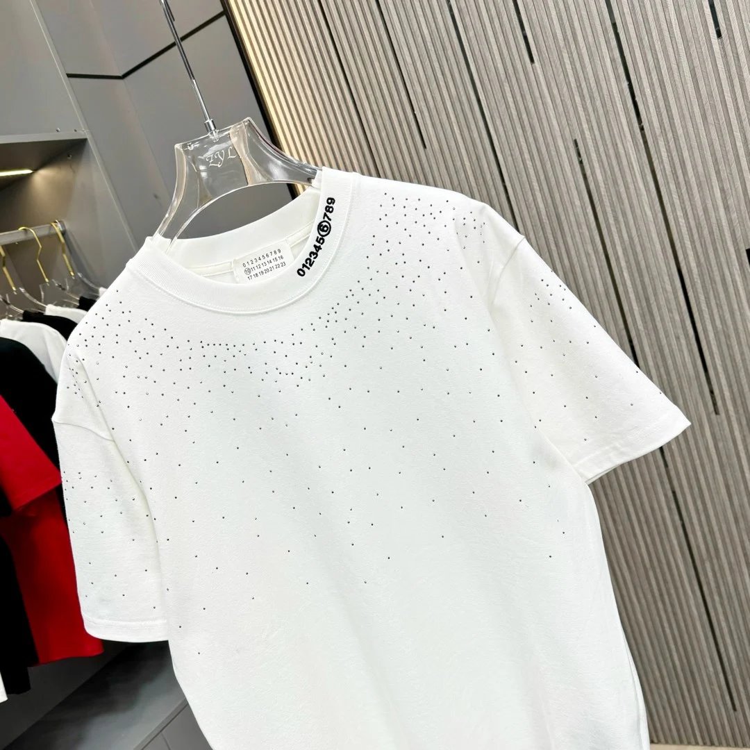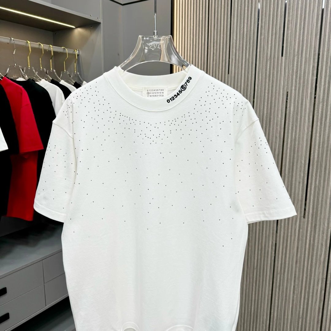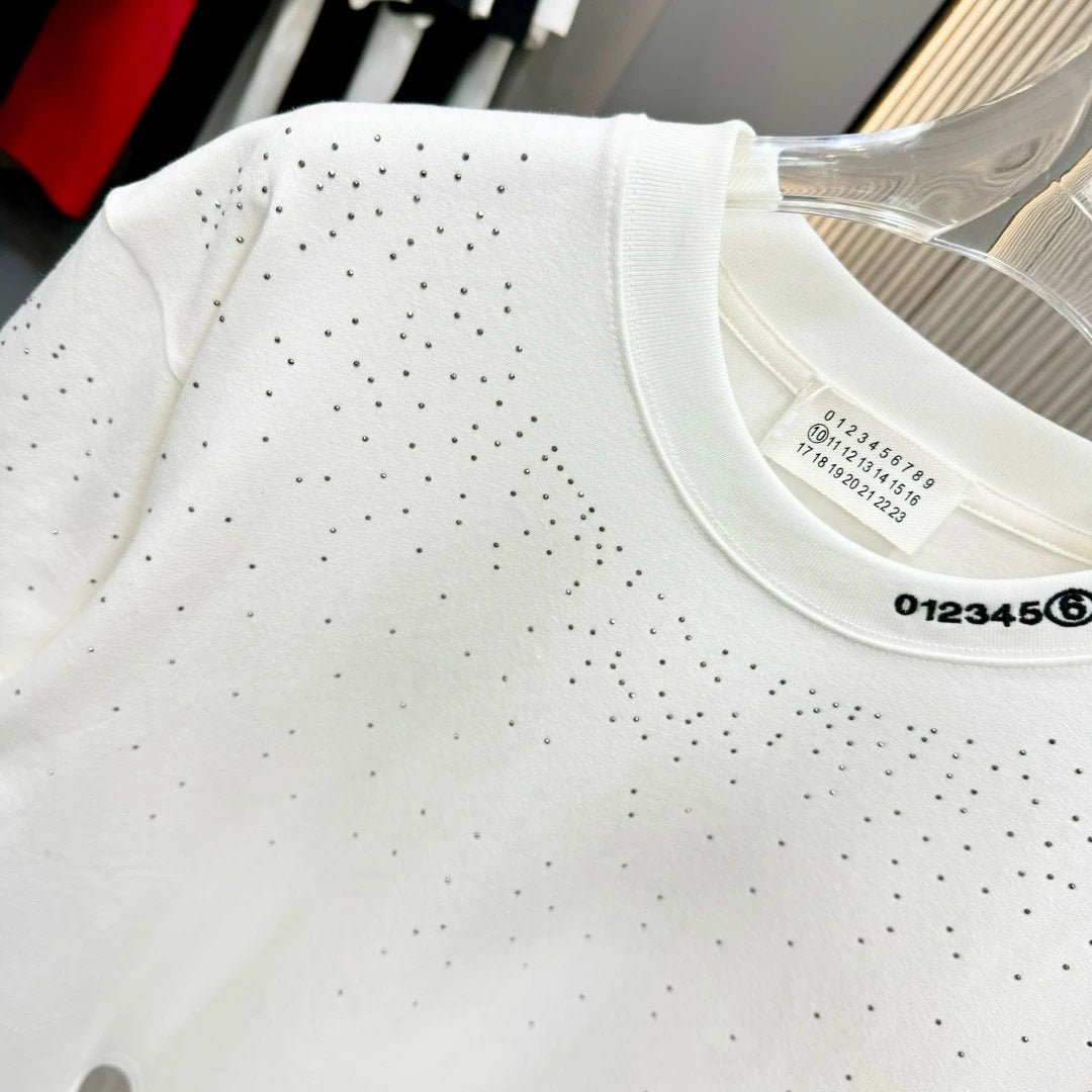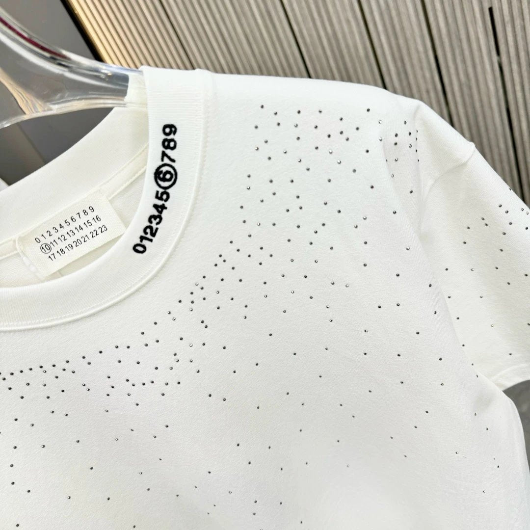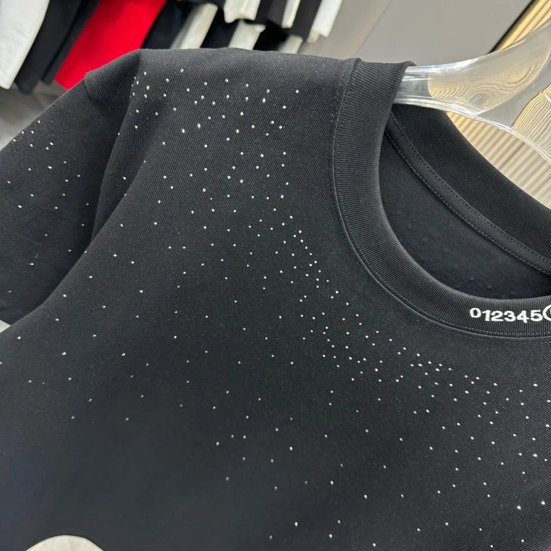 (MM6 Margiela) Using Thousands of Needles? Embroidery with Loose Diamonds and MM6 Signature Logo on the Back, Couple's Short T-Shirt, High-End Minimalist Style That Never Gets Old, Perfect Details Handling? Classic Logo Looks Great on Men and Women Same Style Sizes: S M L XL XXL Pre-Purchase Instructions