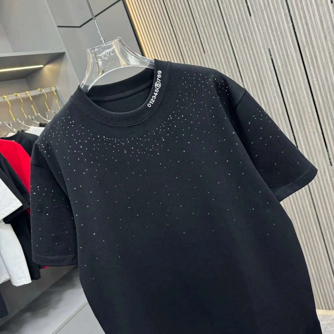 Maison Margiela T-shirt Embroidered Chest with Loose Rhinestones logo round Neck Short Sleeve25ss New Pure Cotton Unisex Style T T-shirt OS Loose Fit Base Shirt Half Sleeve T-Shirt Top Half Sleeve