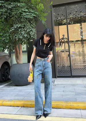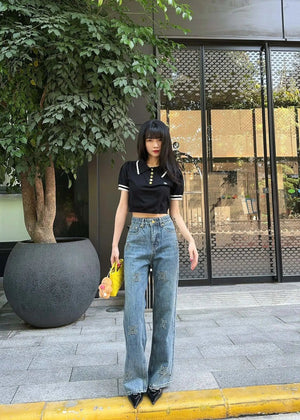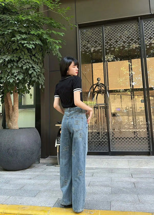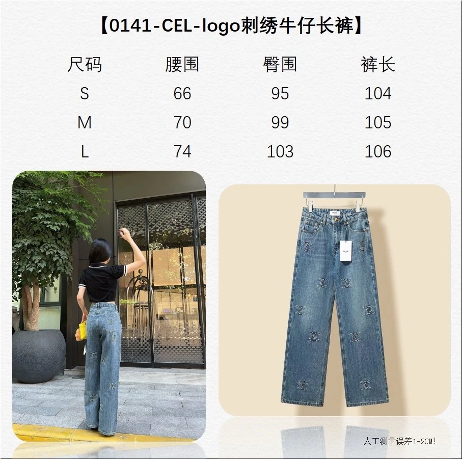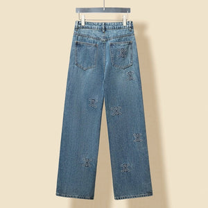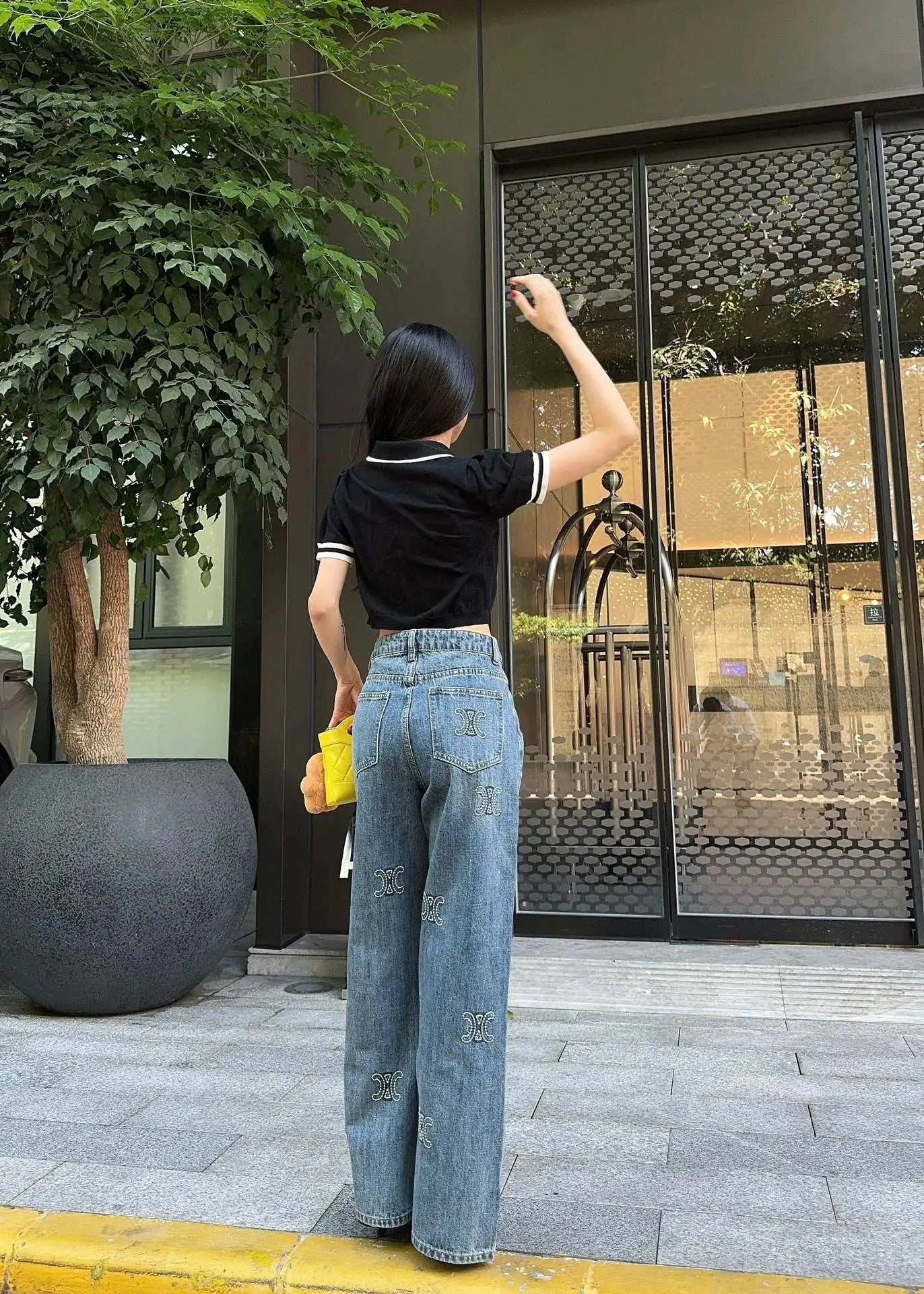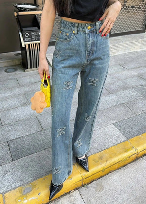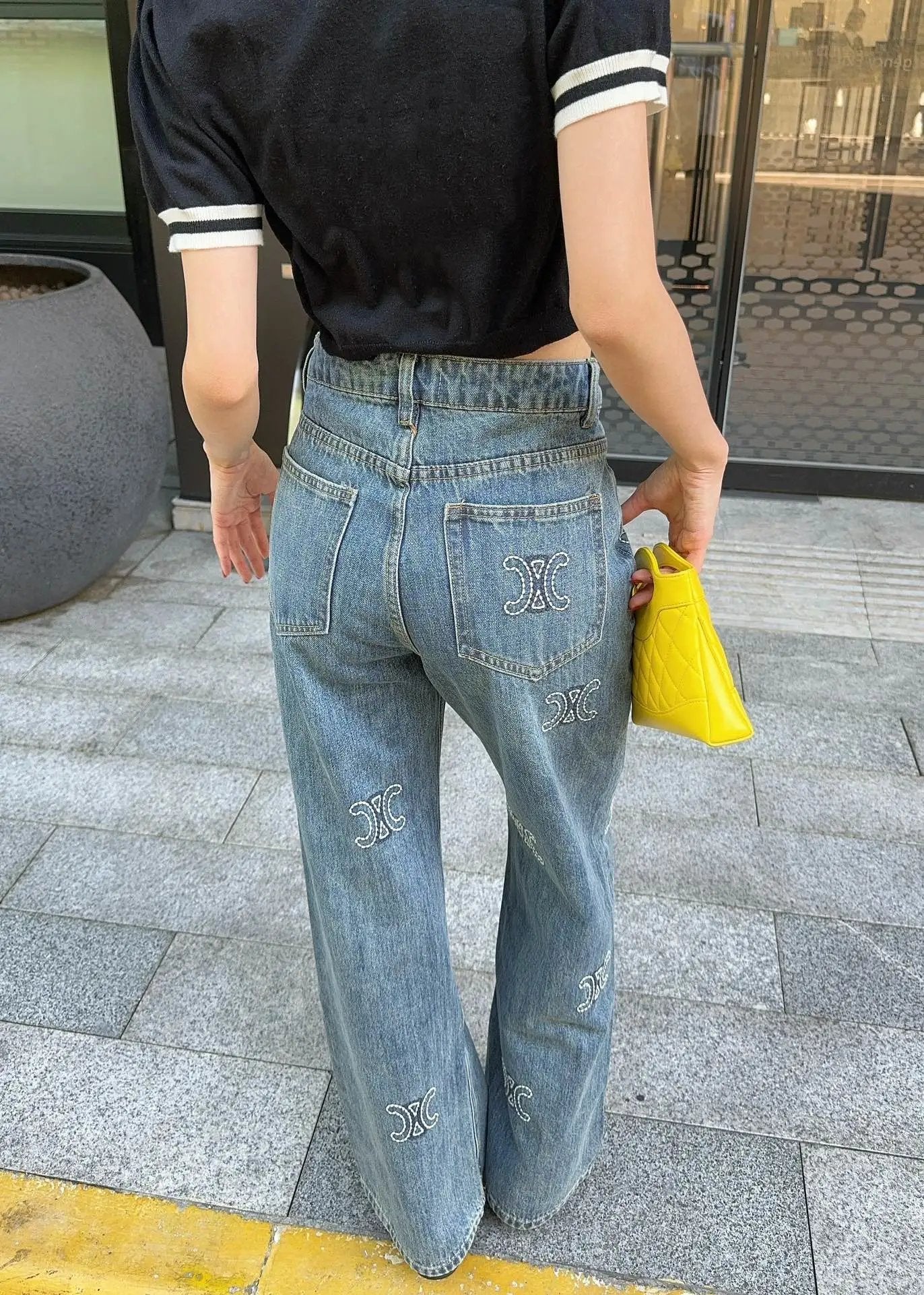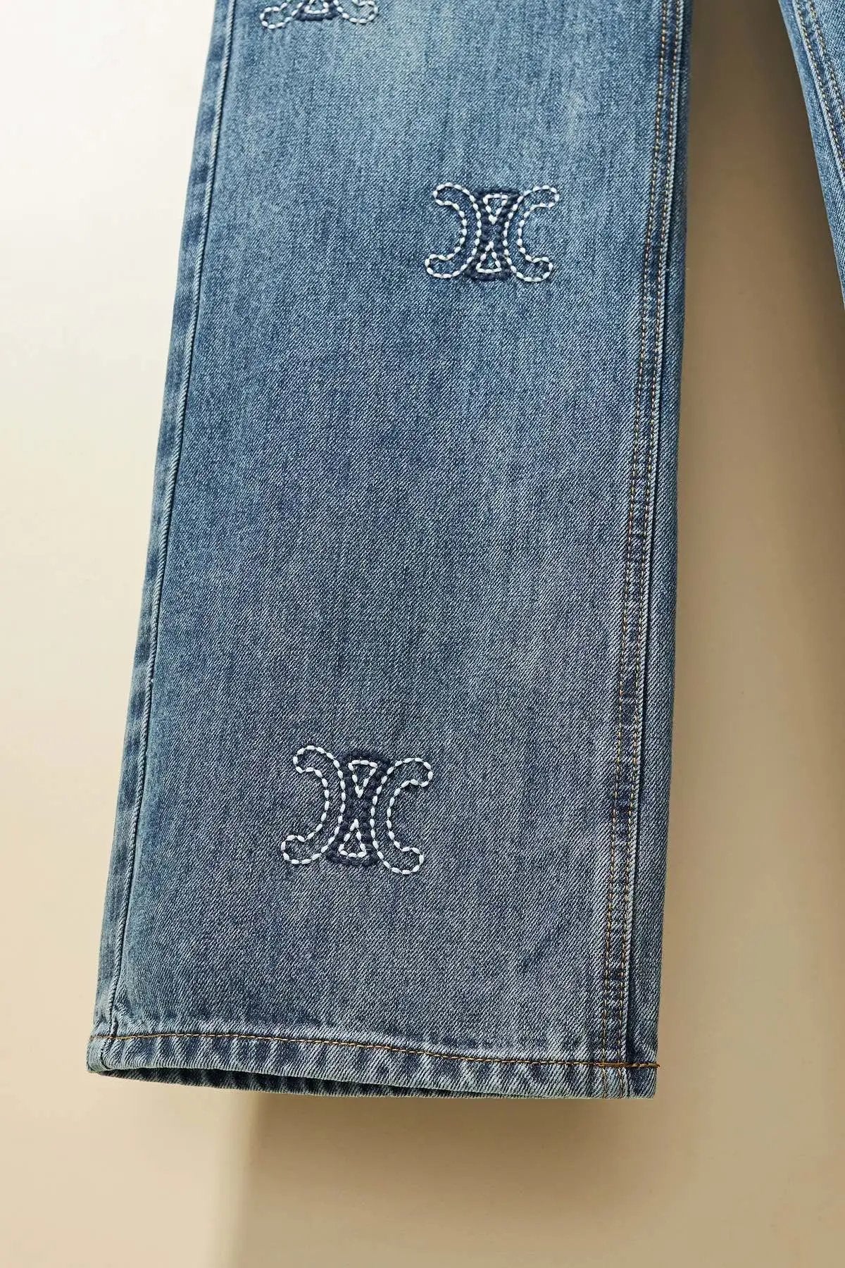 Top Version Ce Celine Embroidered Denim Straight Pants Women Versatile Casual