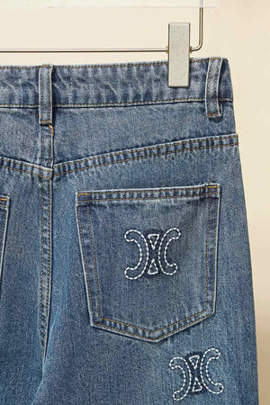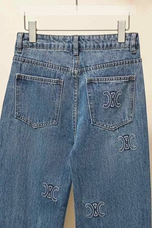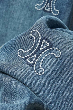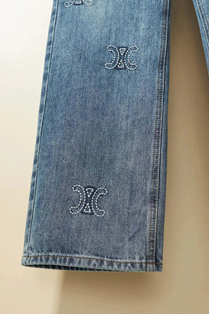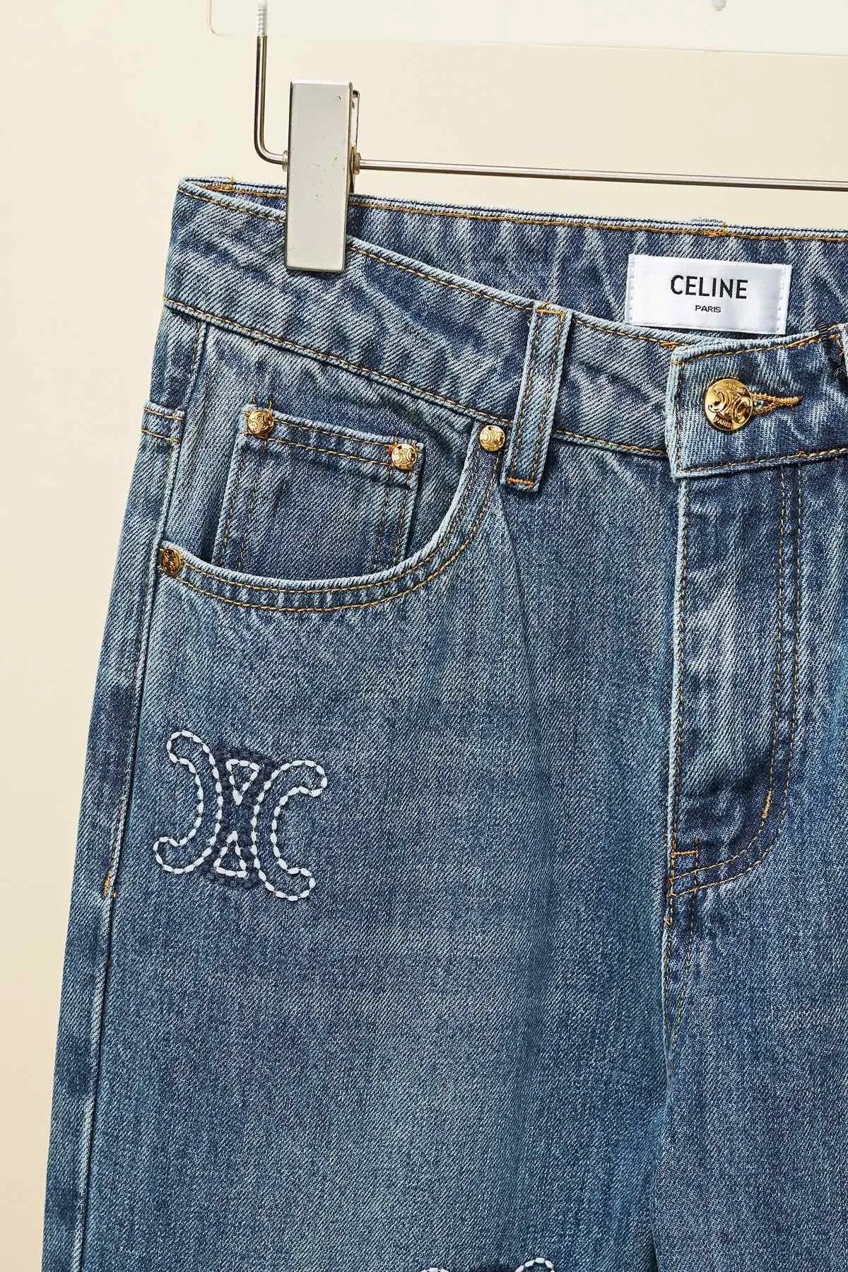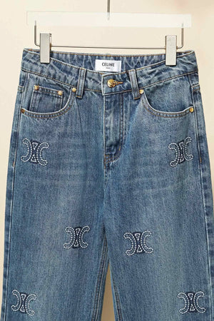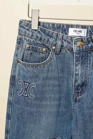 Celine Jeans Embroidered Denim Straight-Leg Pants for Women Versatile Casual