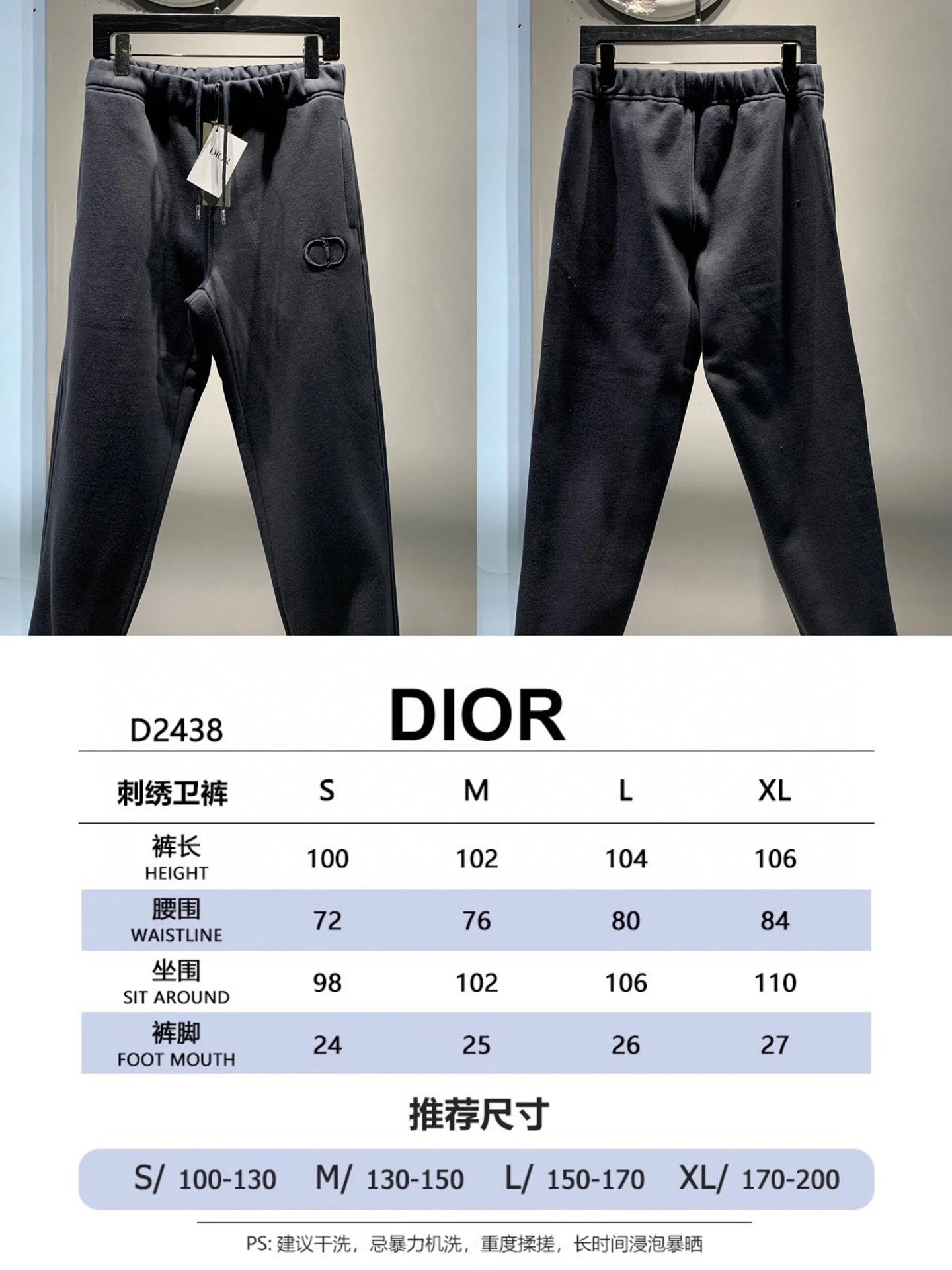 Dior CD Embroidered Jogger Sweatpants Autumn Unisex Long Pants Drawstring Winter Loose Plus Size Casual Pants High Waist Solid Color Pre-Purchase Instructions