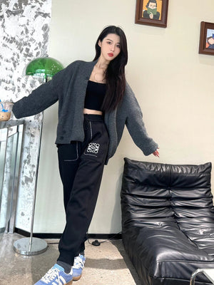 LOEWE Sweatpants Embroidered Logo logo Fleece-lined Trousers for Men and Women