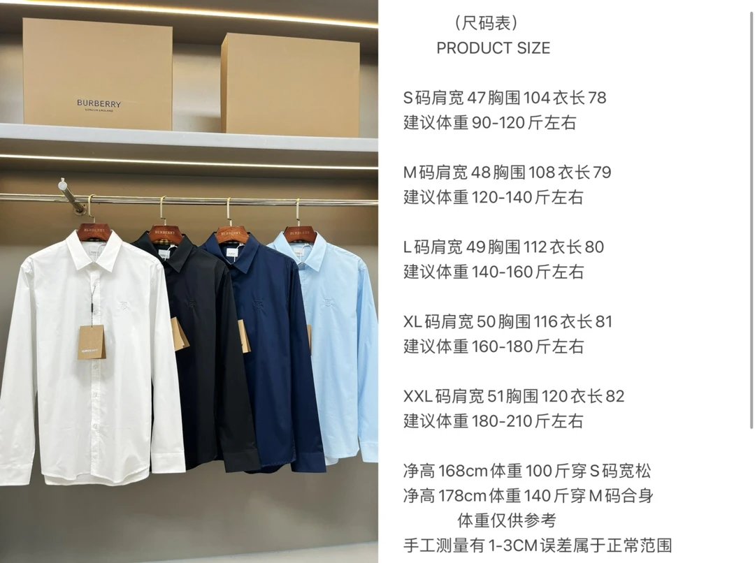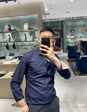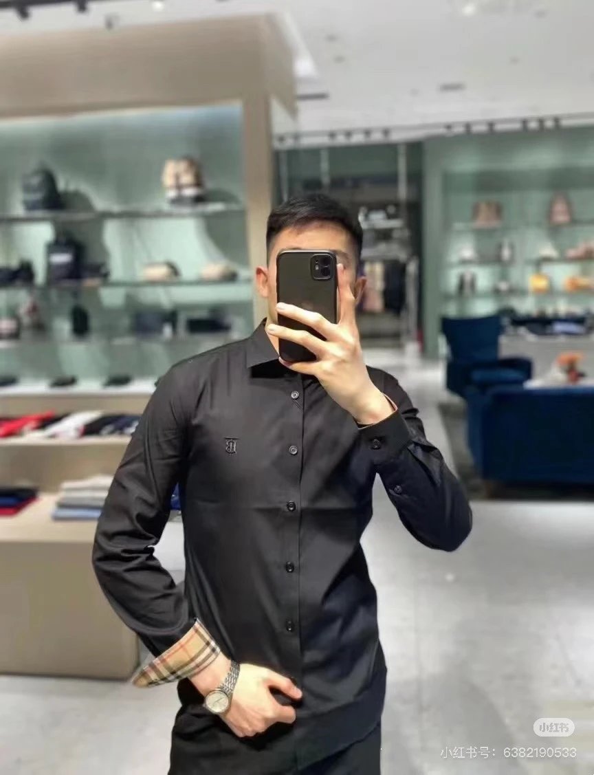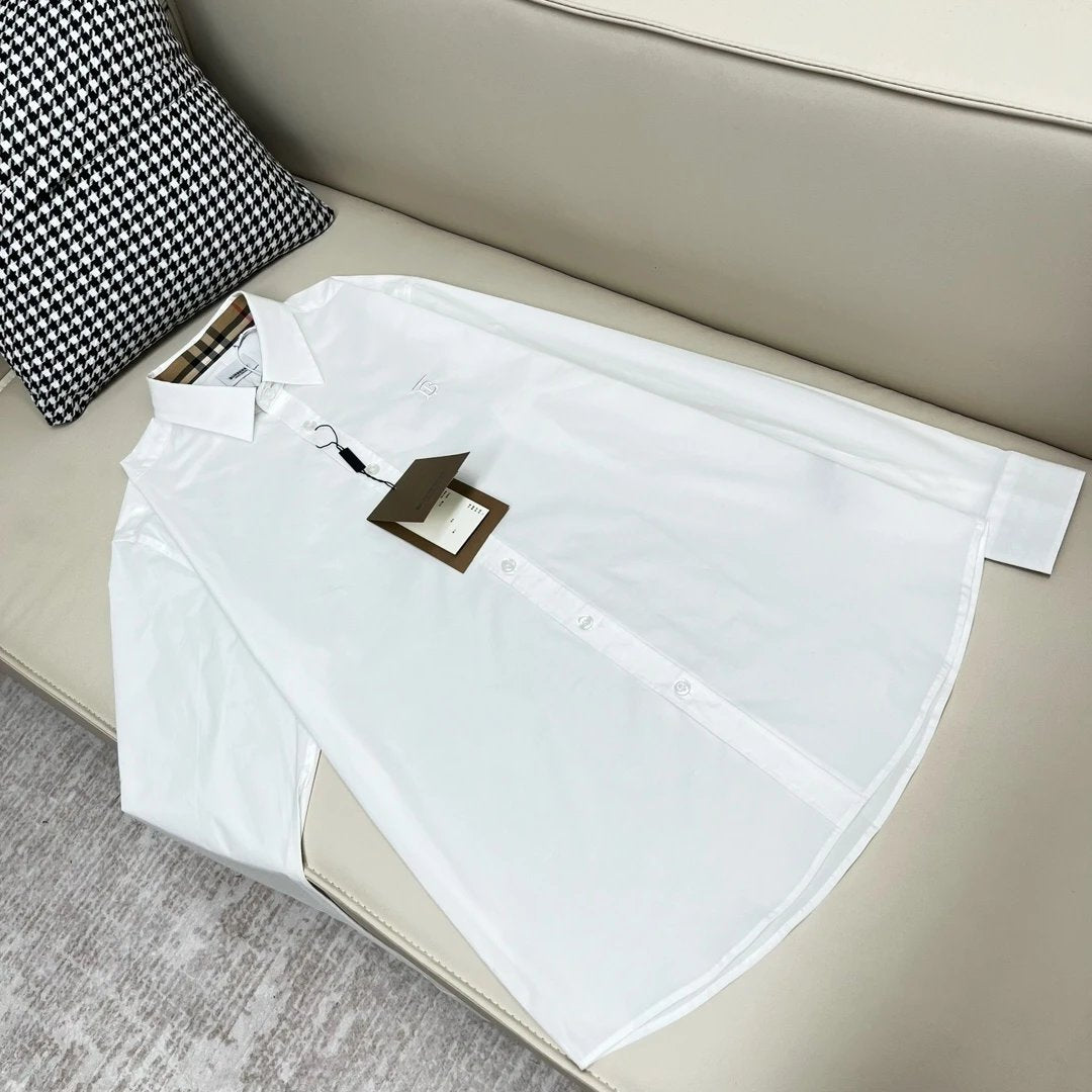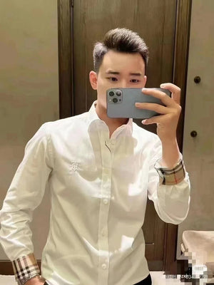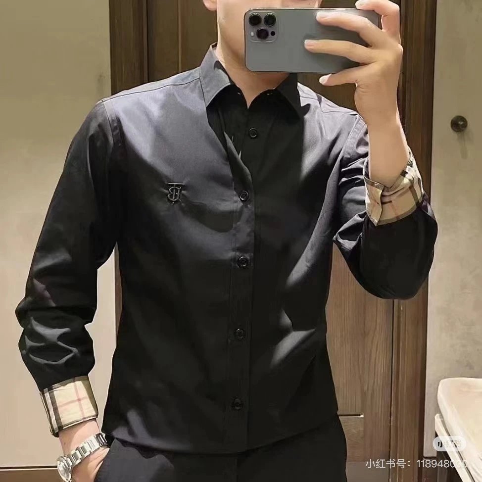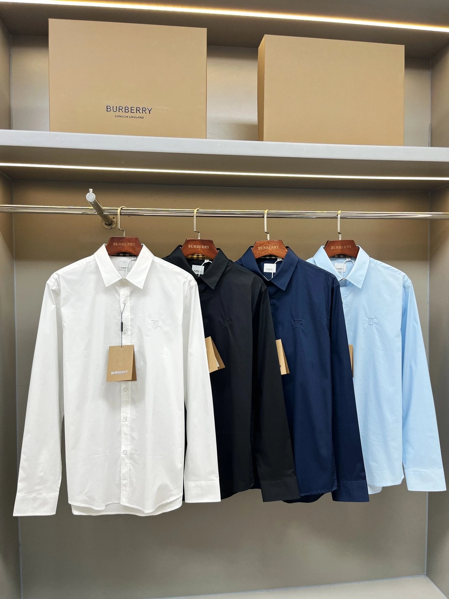 Burberry Shirt Embroidered Men's Exclusive Logo Solid Color Long Sleeve Shirt Versatile Casual Unisex