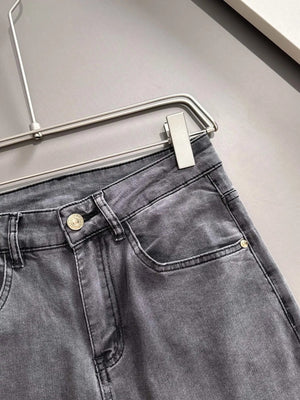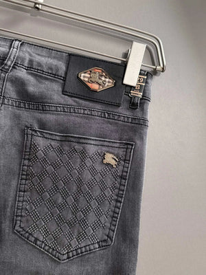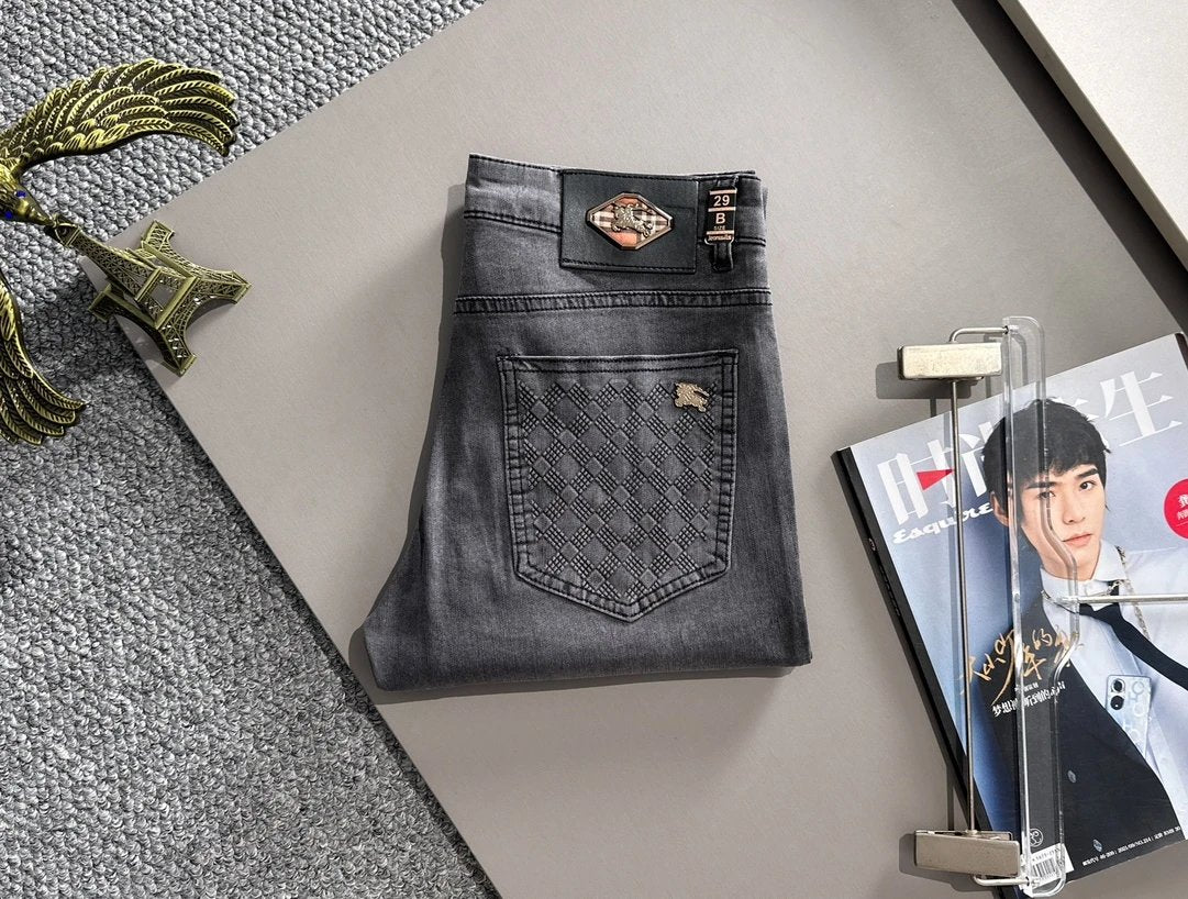Burberry Jeans Embroidered Pocket Classic25ss Spring Summer New Straight Slim Fit Jeans Unisex Loose Fit Long Pants Denim Plain Cotton