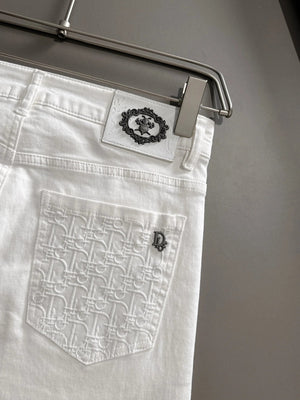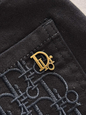 Dior 2025 Four Seasons New Embroidered Pocket Slim Fit Jeans, Made of Imported Japanese Denim Cotton Fabric, Woven Production, Complete with Three Labels, Simple Yet Elegant, Soft and Delicate Comfortable, Versatile Fashionable! Light Luxury Daily Commuting Essential Item!