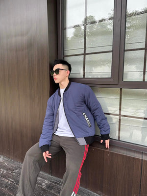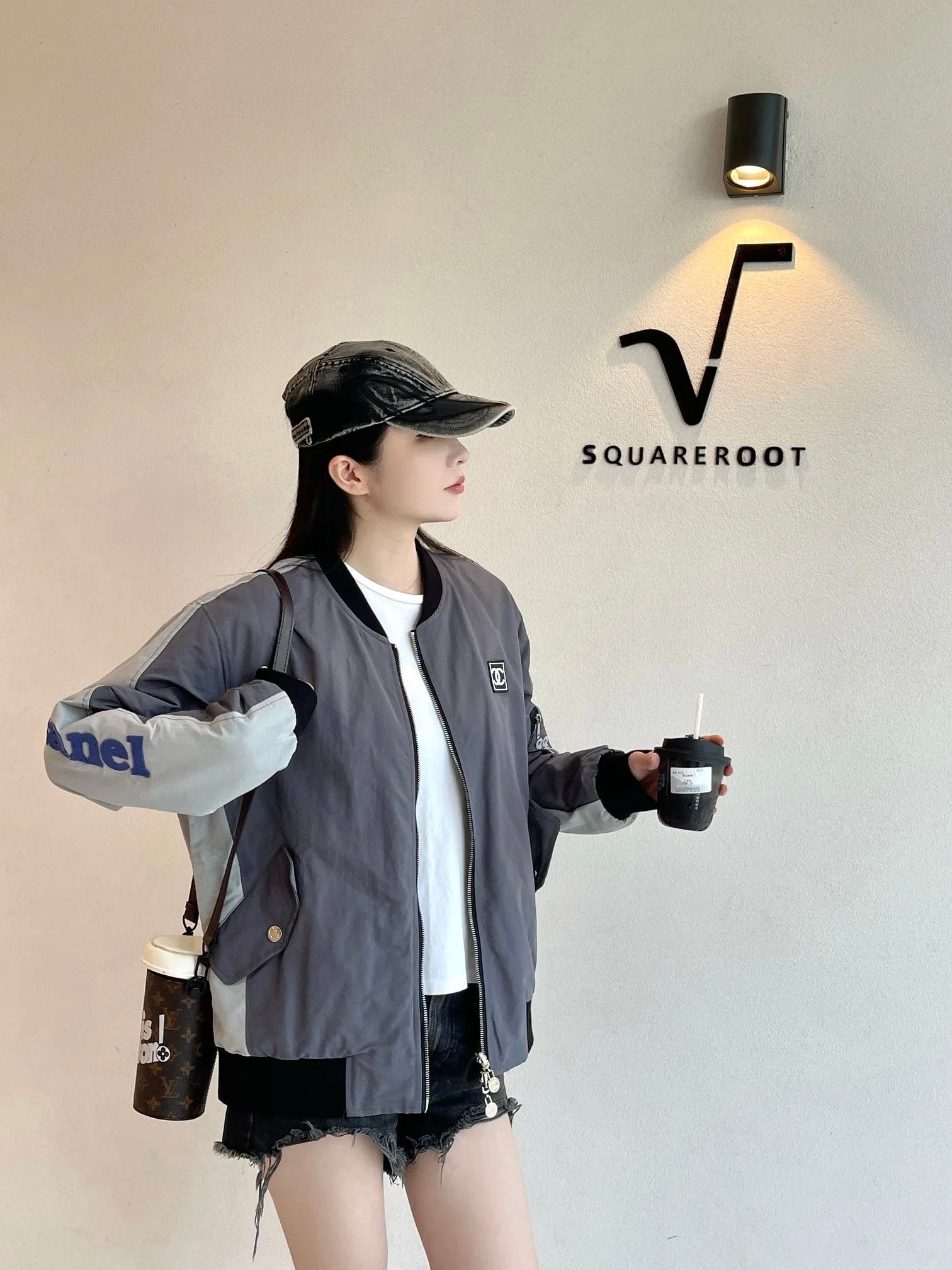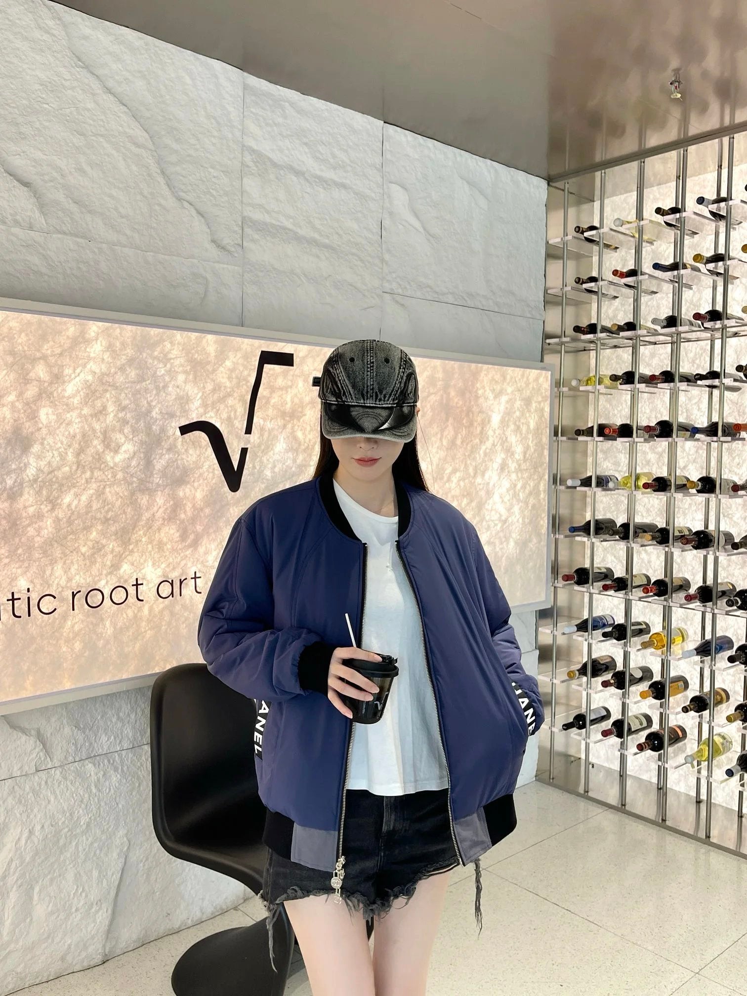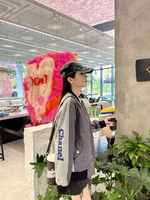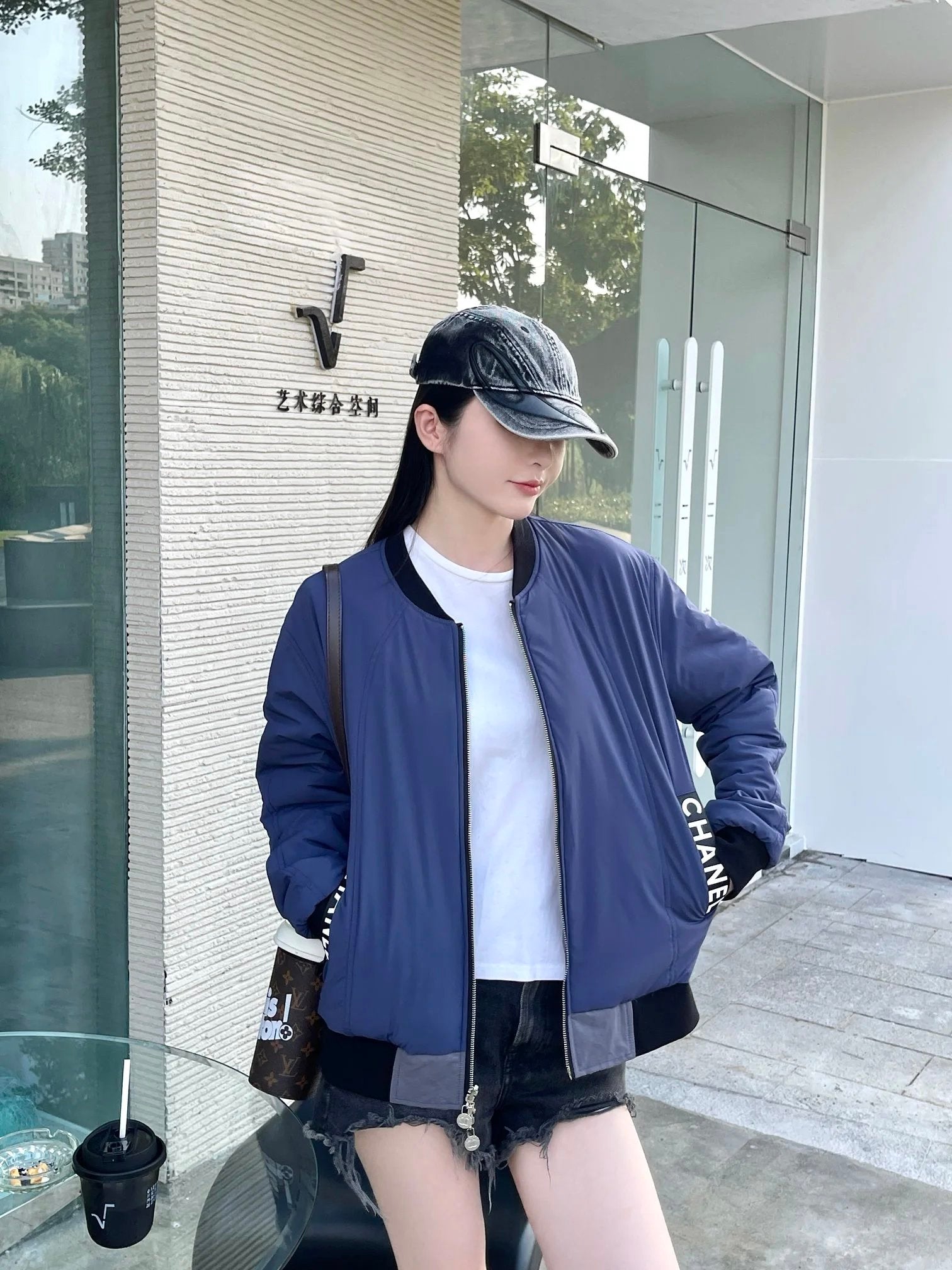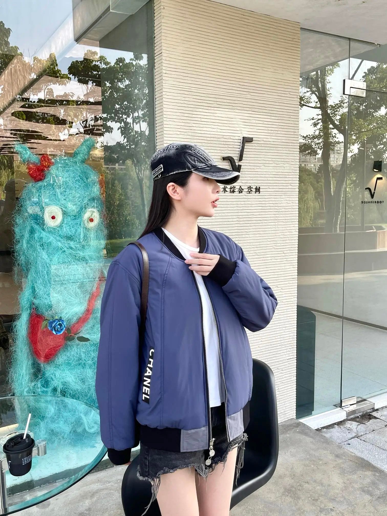 Chanel Jackets Embroidered Slogan Retro Zipper Reversible Baseball Jacket Cotton Coat Unisex Jacket Casual Loose Versatile Winter Warm Sports Jacket