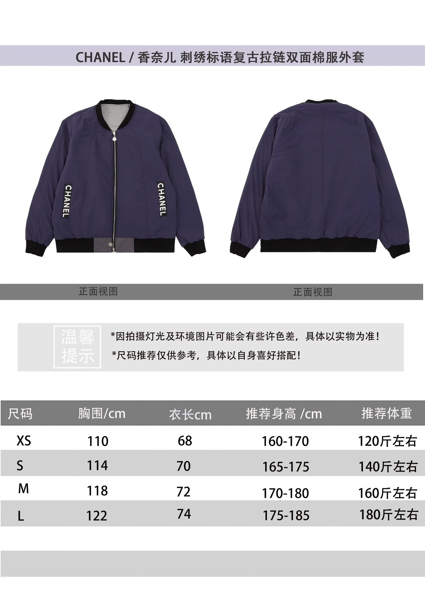 Fragrant Embroidered Slogan Retro Zipper Double-Sided Cotton Jacket Pre-Purchase Instructions
