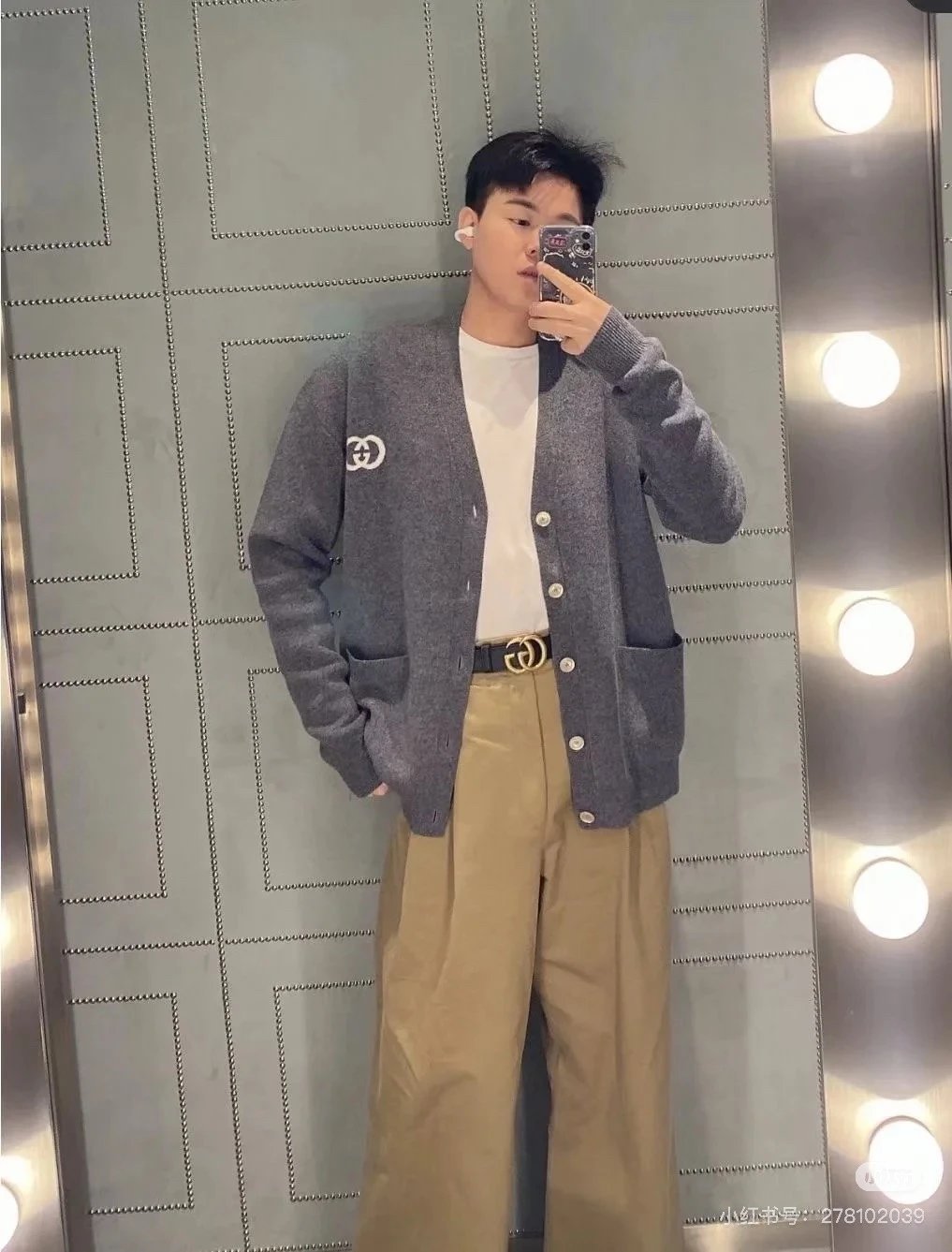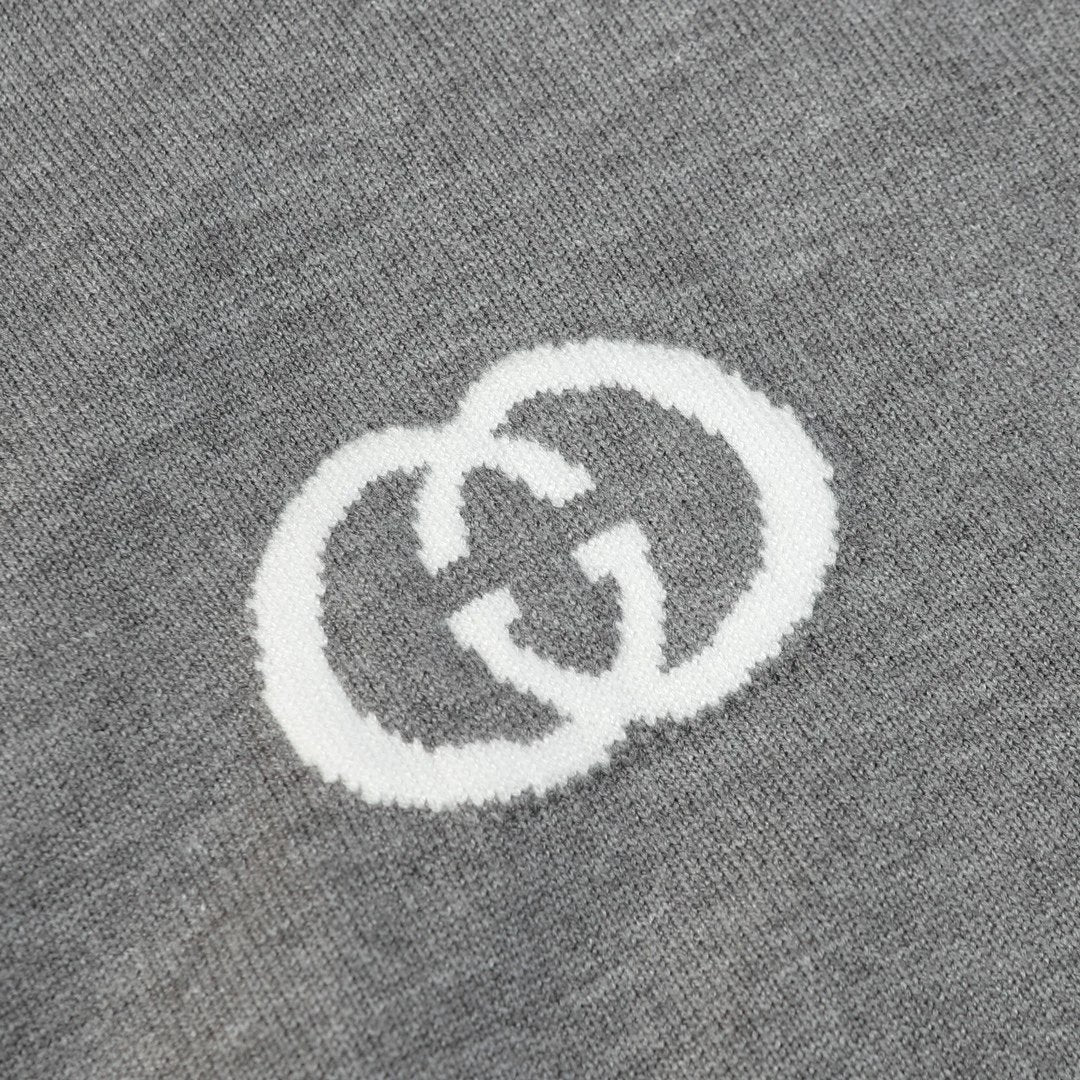 Top Version GUC Gucci Knit Wool Cardigan with Interlocking G Logo Embroidery Solid Color V-neck Long-Sleeve Knitwear Cardigan Sweater G Home Coat Men and Women Same Style before Purchase Instructions