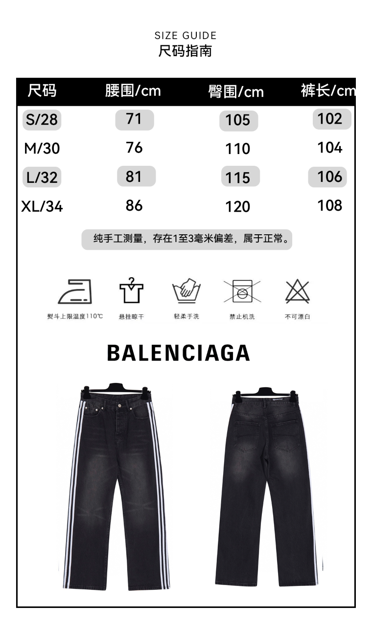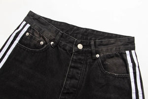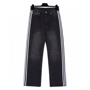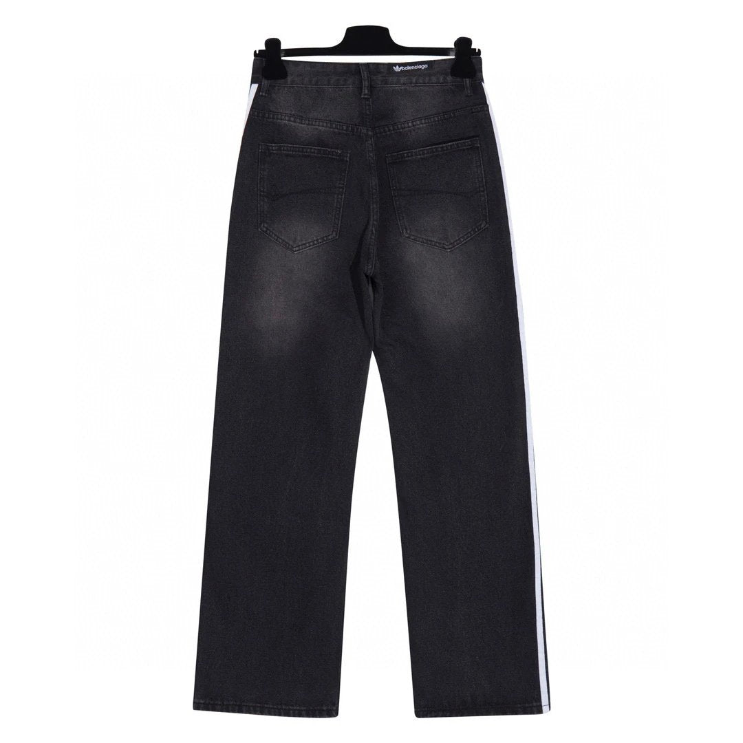 Paris Collaboration Three-Stripes Washed Jeans, Highly Recommended by Many Internet Celebrities and Stars.Custom 14 Ance 100% pure cotton denim fabric, webbing made of 100% virgin cotton, color perfectly restored after washing, full of texture.