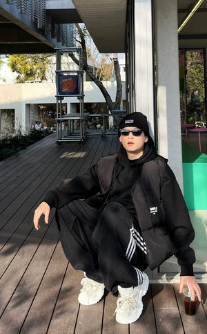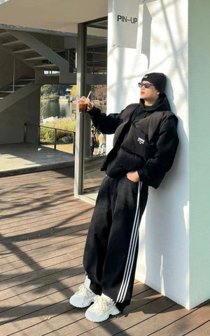 The unique silhouette of the pants is super thoughtful; they don't picky about leg shape and have an amazing stacked hem effect.The striking webbing design on both sides not only instantly elongates the leg line but also enhances the sense of branding significantly, turning heads on the street.The unisex design makes it an essential versatile piece in the wardrobe, allowing you to easily create various fashion looks.