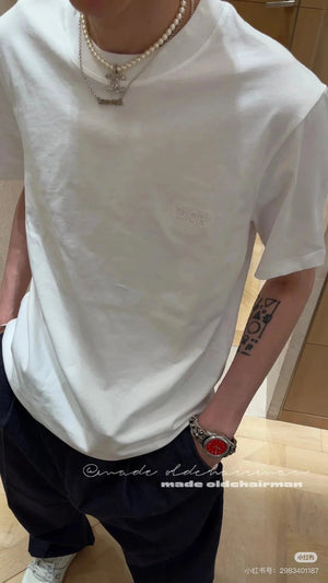 Dior T-shirt Embroidery on the chest logo round Neck Short Sleeve25ss New Pure Cotton Unisex Style T T-shirt OS Loose Fit Base Shirt Short Sleeve Top T-Shirt