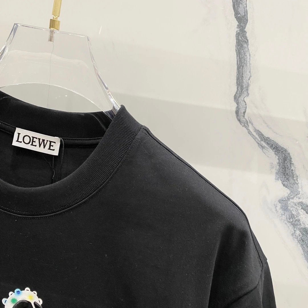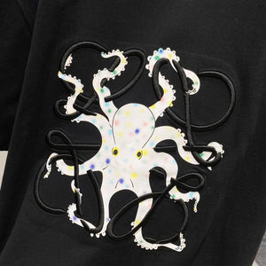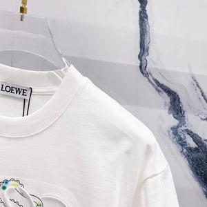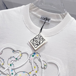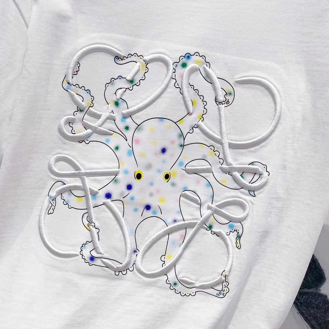 LOEWE T-shirt Embroidery Totem LOGO Joint Name Octopus Printed Logo round Neck Short Sleeve25ss New Pure Cotton Unisex Style T T-shirt OS Loose Fit Base Shirt Short Sleeve Top T-Shirt