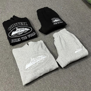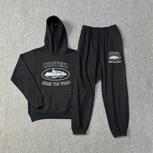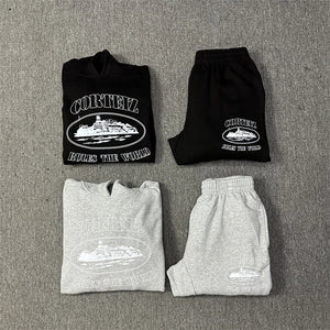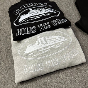 Corteiz Hoodie European and American Fashion Street Letters Ship Printed Hoodie Suit Fleece-lined Hoodie Sweatpants