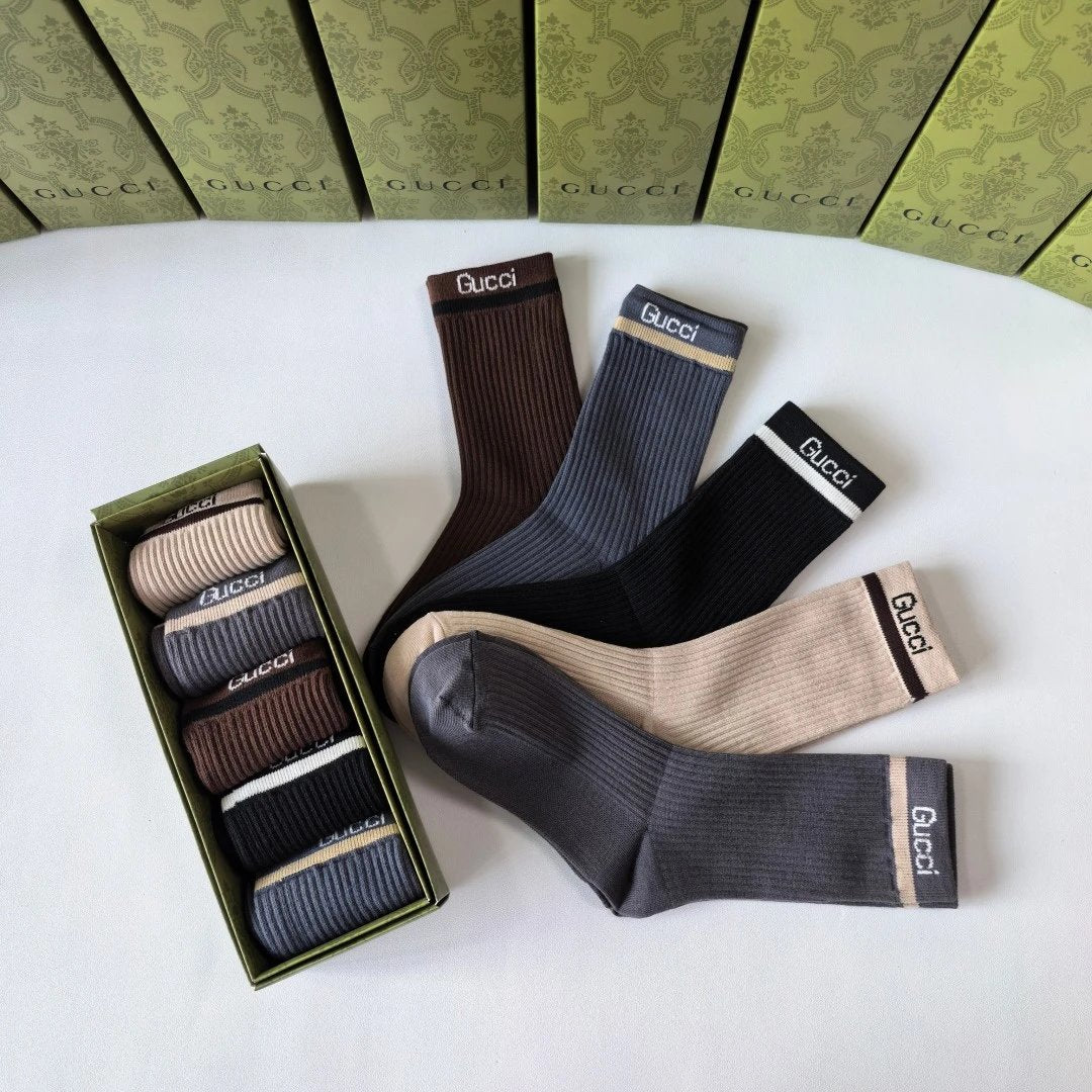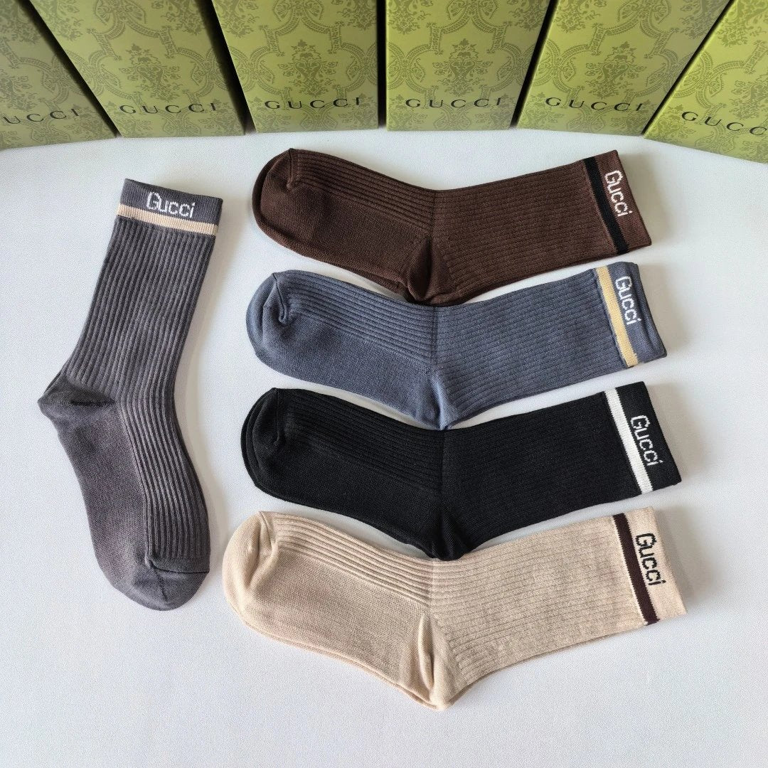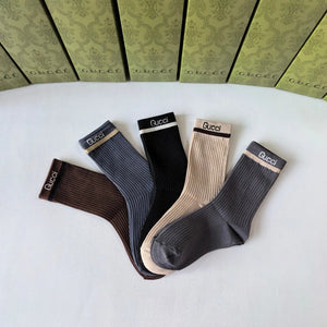 Gucci Sock 【Five Pairs Per Box】Classic Letters logo Pure Cotton Mid-Calf Slouch Socks Breathable Fashionable25ss New Cotton Socks Thin Business Sports Casual Spring Summer Autumn Versatile Deodorant Sweat-Absorbing