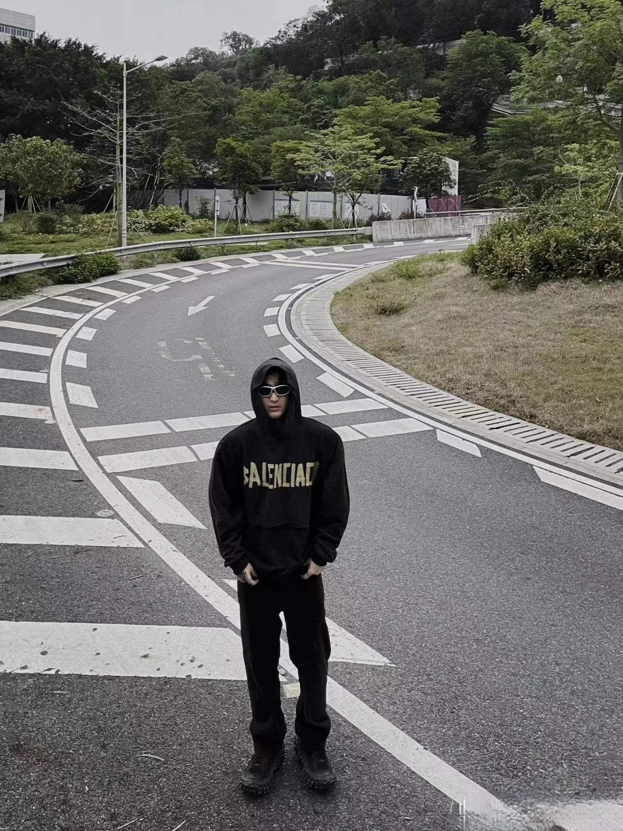 Fleece Lined Thickened Balenciaga Classic Tape Print Logo Hoodie Sweatshirt Unisex Sports Casual Loose Fit Versatile Pre-Purchase Instructions