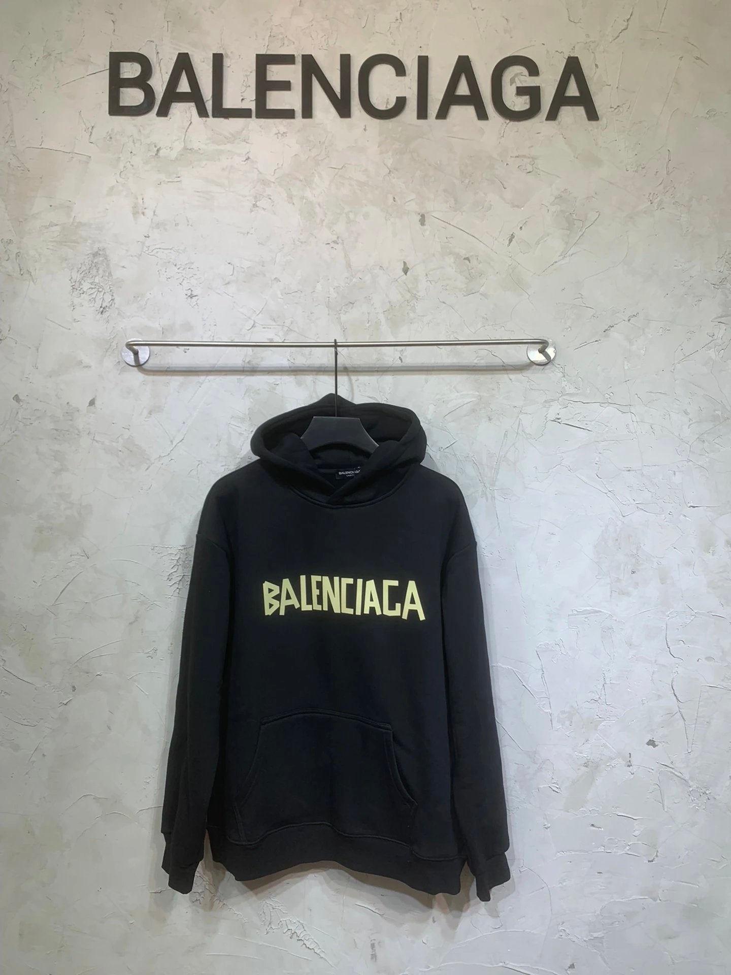 Balenciaga Hoodie Fleece-lined Thickened Classic Tape Print logo Hooded Sweatshirt Hoodie Jacket Top Unisex Sports Casual Loose Fit Versatile