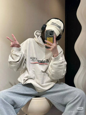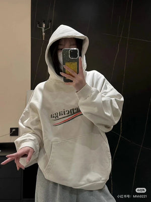 Balenciaga Hoodie Fleece Lined Thickened Graffiti Cola Print logo Hooded Sweatshirt Hoodie Jacket Top Unisex Sports Casual Loose Fit Versatile