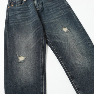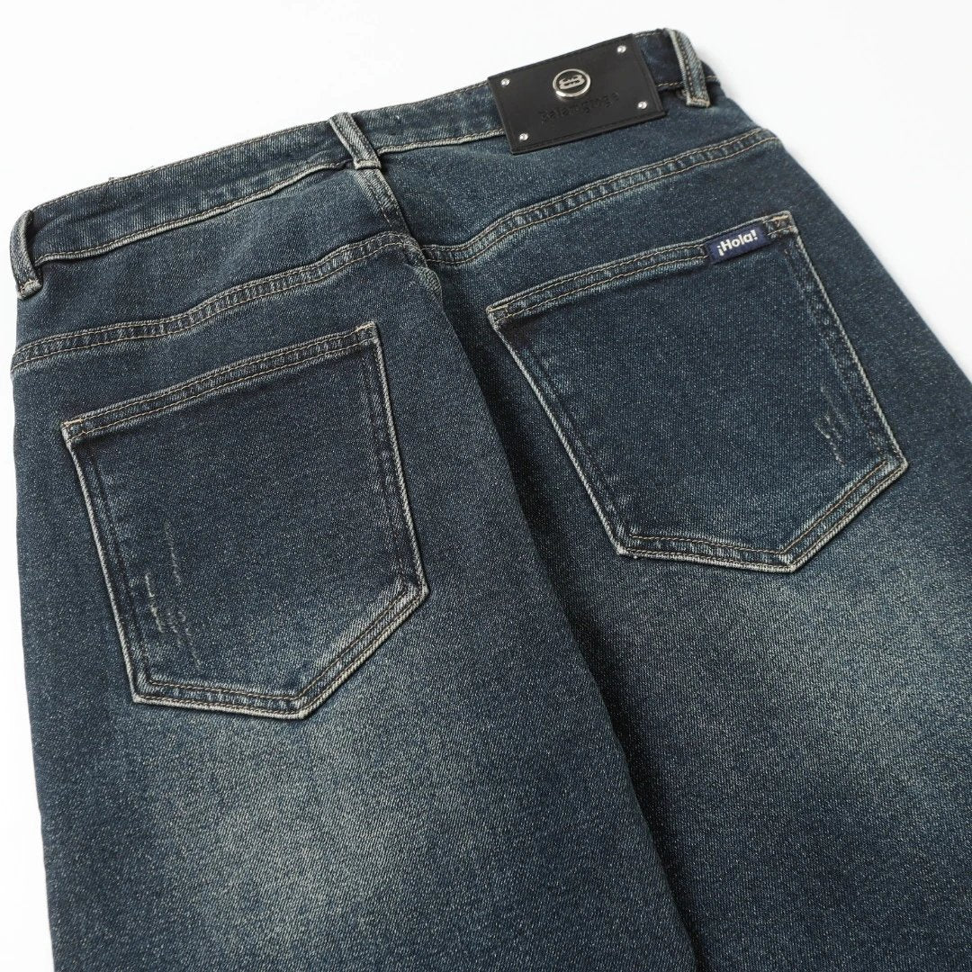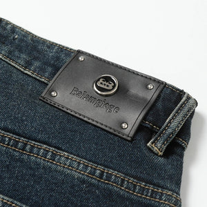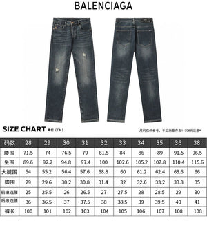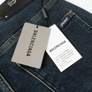 BLCG Balenciaga Bottom Fleece Back Waist Leather Label Logo Straight Washed Blue Jeans Autumn Winter New Unisex Loose Casual Wide Leg High Waist Pre-Purchase Instructions