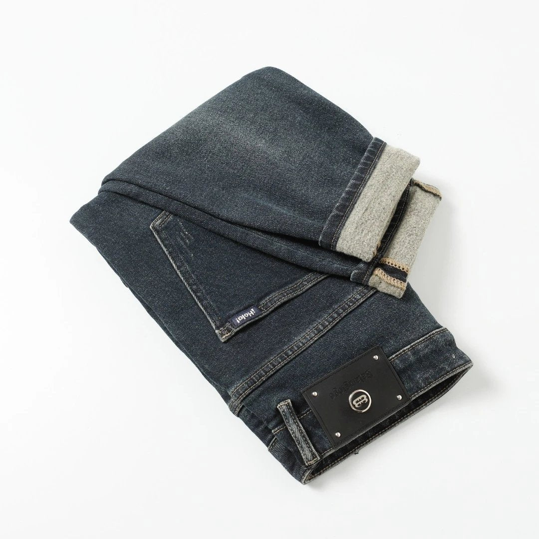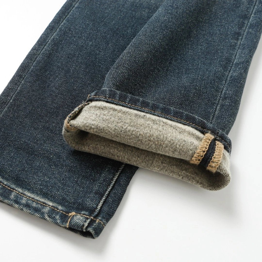 Balenciaga Jeans Fleece-Lined Waistband with Leather Tag logo Straight Washed Blue Jeans Autumn Winter New Unisex Loose Casual Wide Leg High Waist Pants