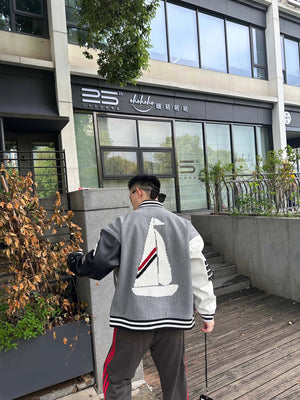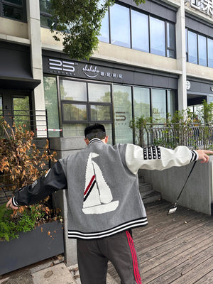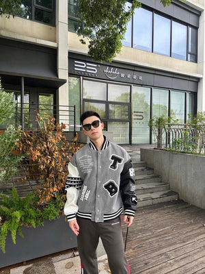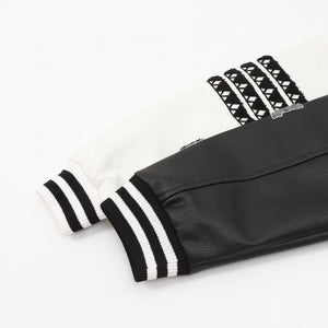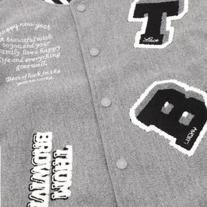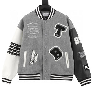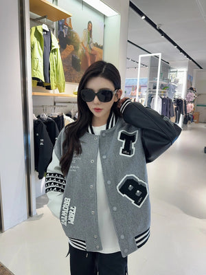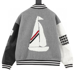 Thom Browne Jackets Flocking Logo Leather Sleeve Baseball Uniform Jacket Coat for Men and Women