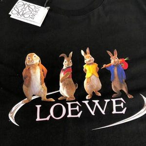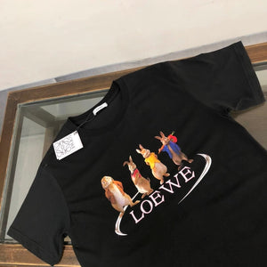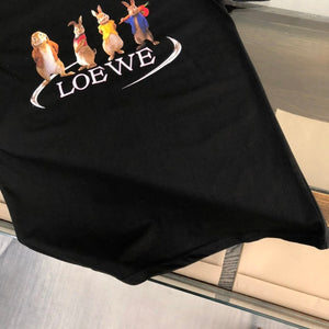 LOEWE T-shirt Four Rabbits Print on the Chest logo round Neck Short Sleeve25ss New Pure Cotton Unisex Style T Casual T-Shirt Base Layer Shirt OS Loose Fit Half Sleeve Top Plus Size