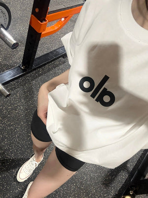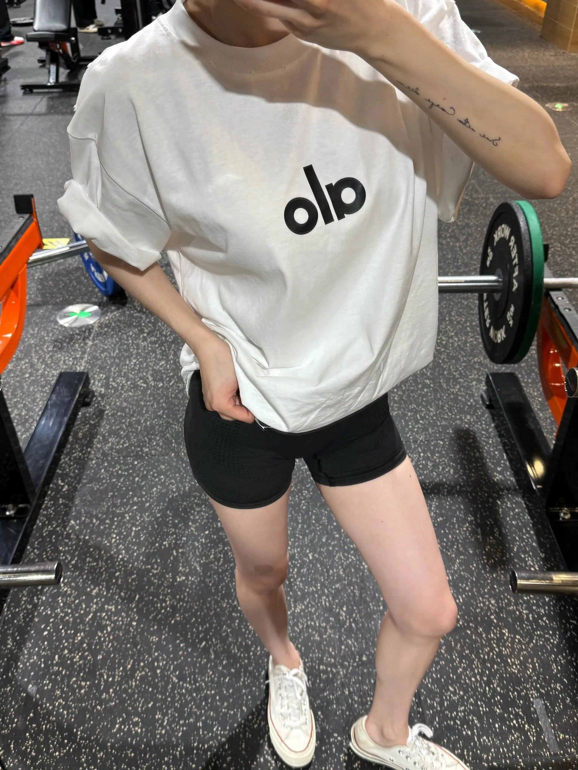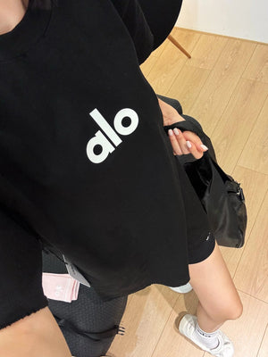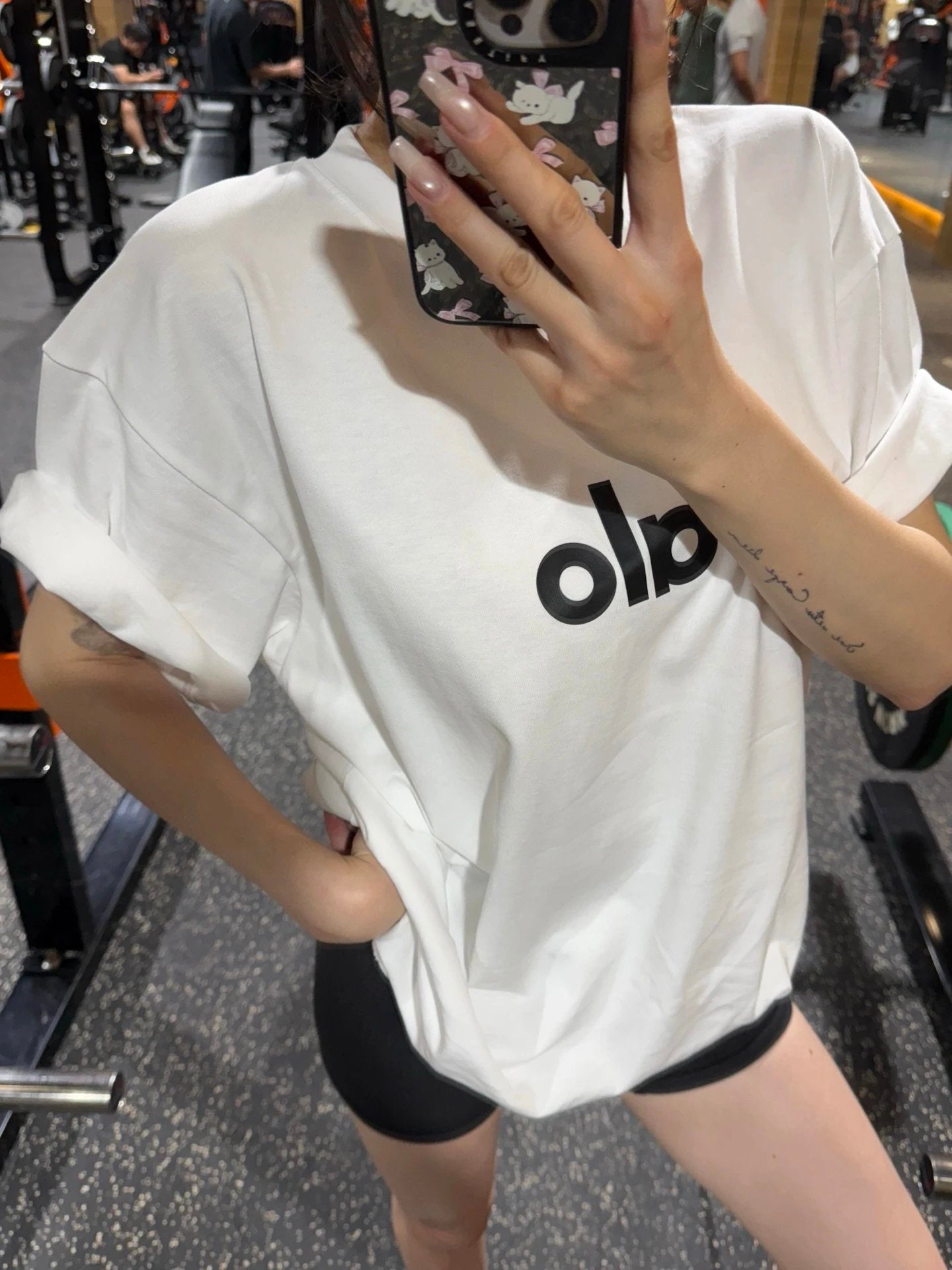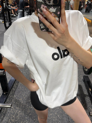 Alo Yoga T-shirt Front and back brand letter print logo round Neck Short Sleeve25ss New pure cotton T Unisex T-Shirt OS Drop Shoulder Loose Fit Base Shirt Top T-Shirt Short Sleeve