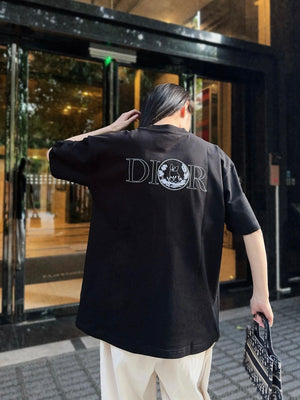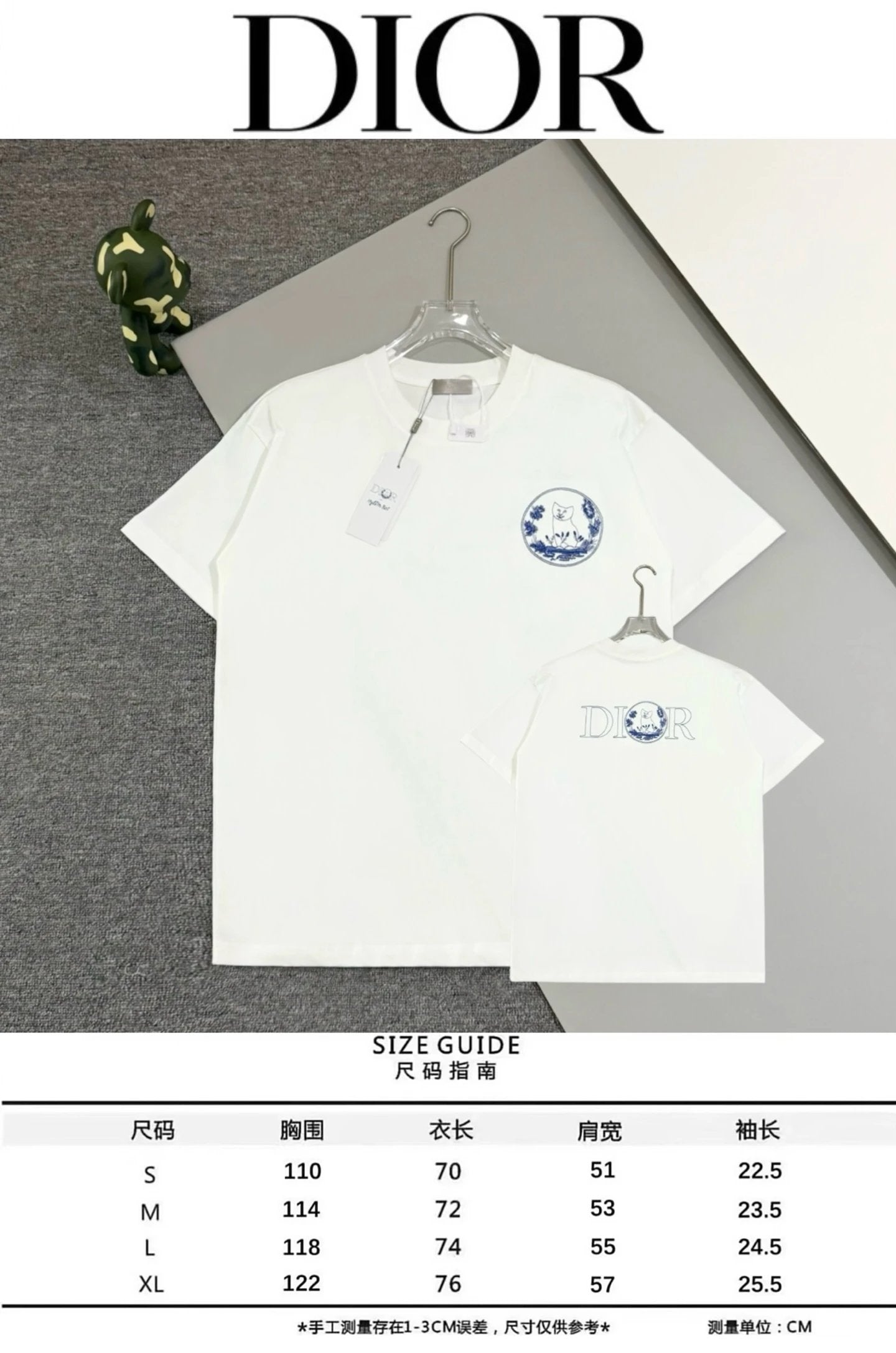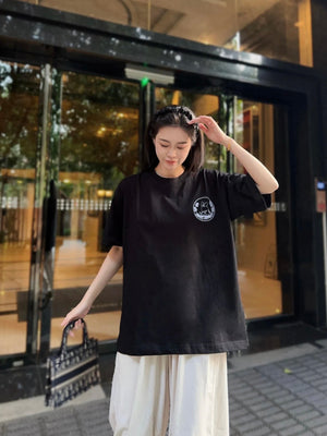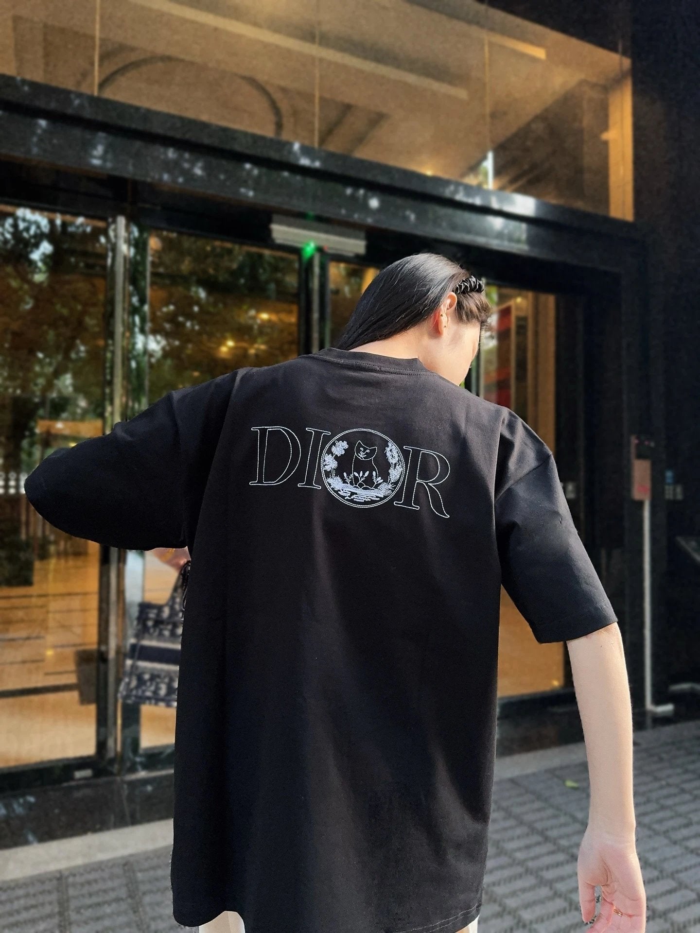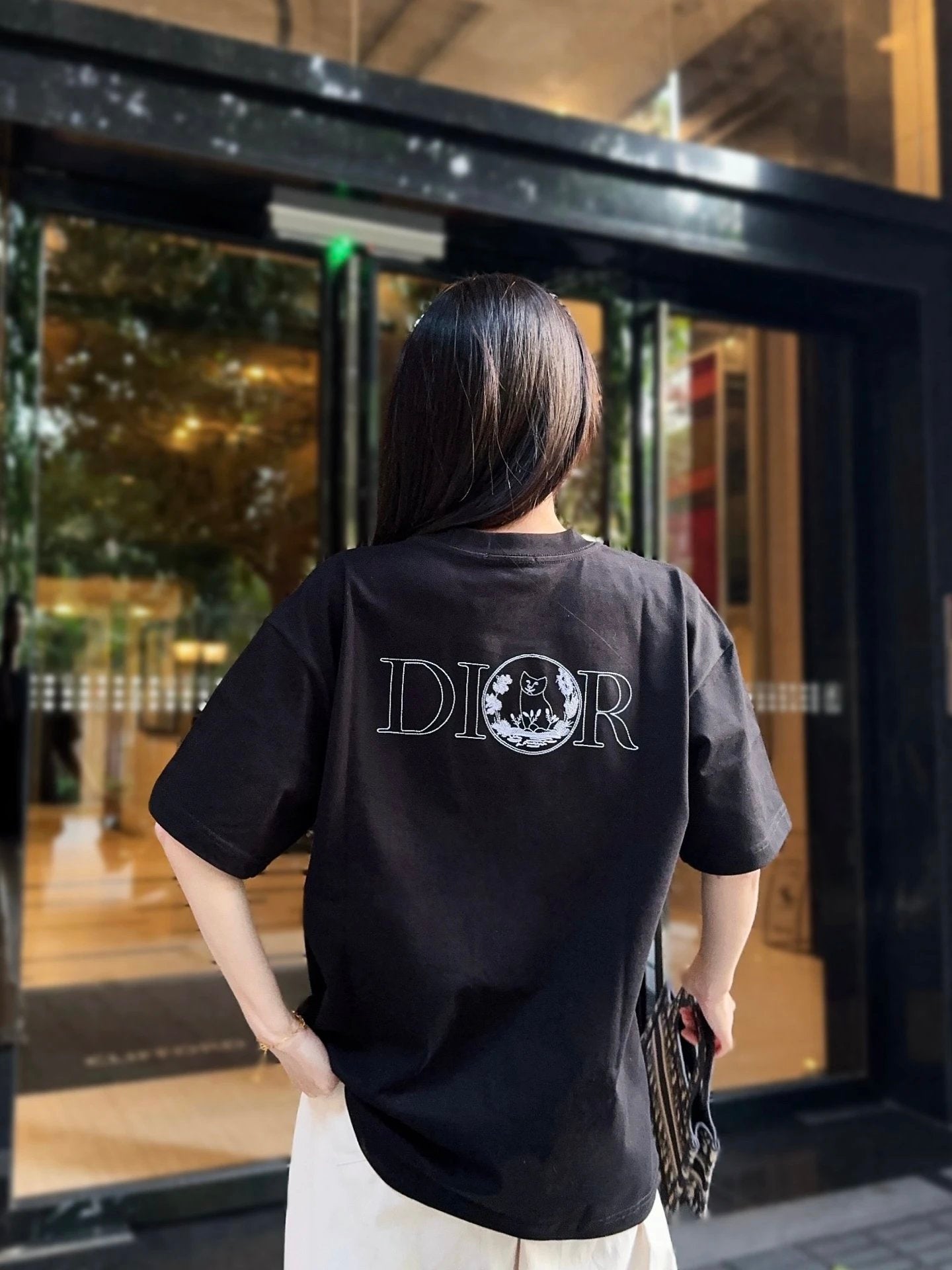 Dior T-shirt Front and back cat embroidery logo round Neck Short Sleeve25ss New Pure Cotton Unisex Style T Casual T-Shirt Base Layer Shirt OS Loose Fit Half Sleeve Top Plus Size