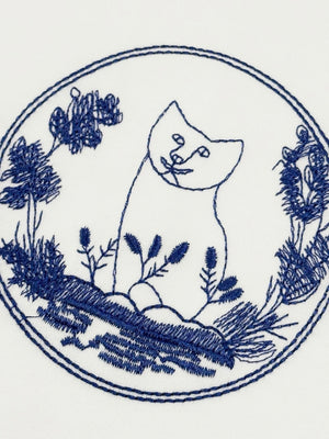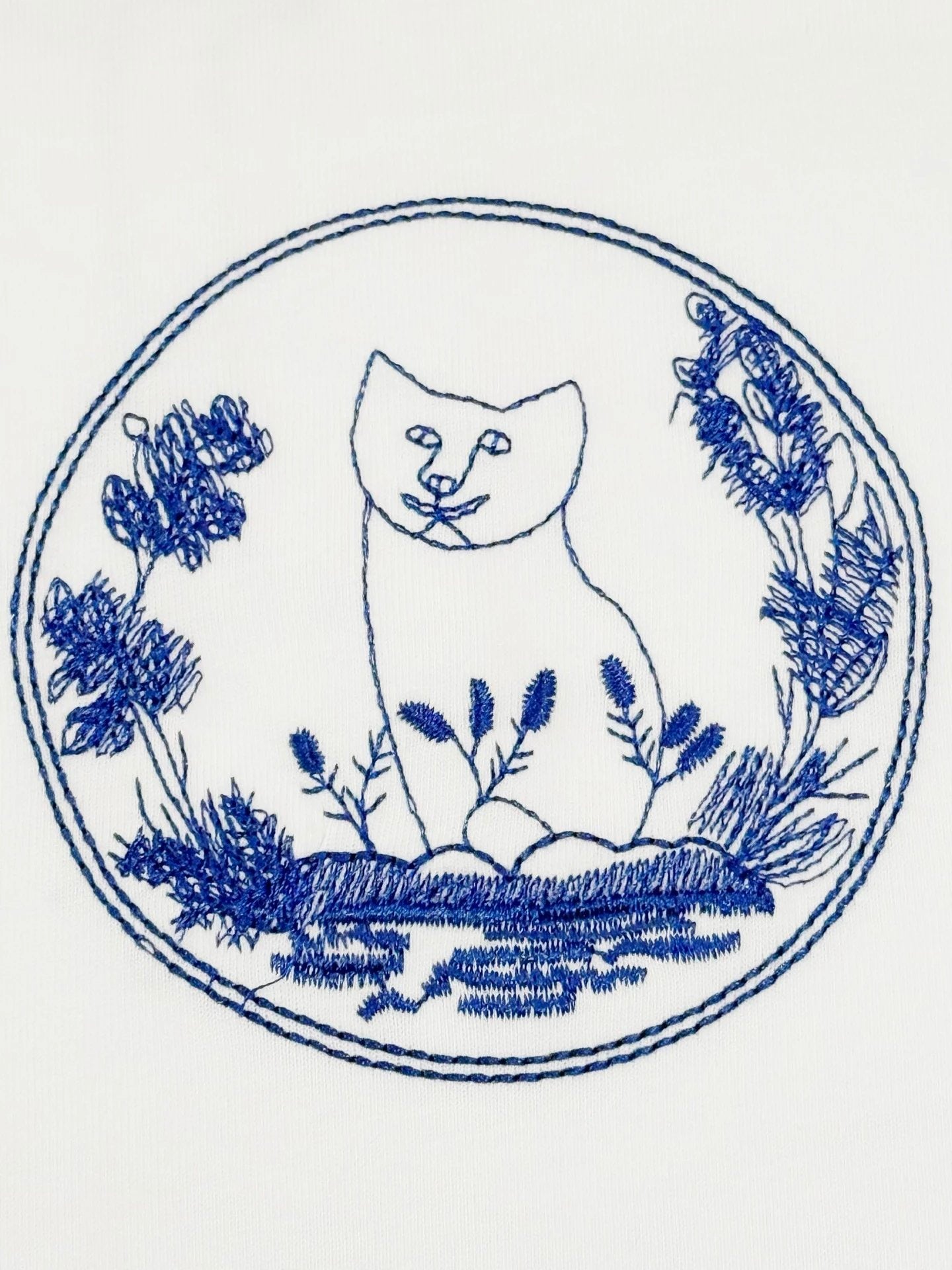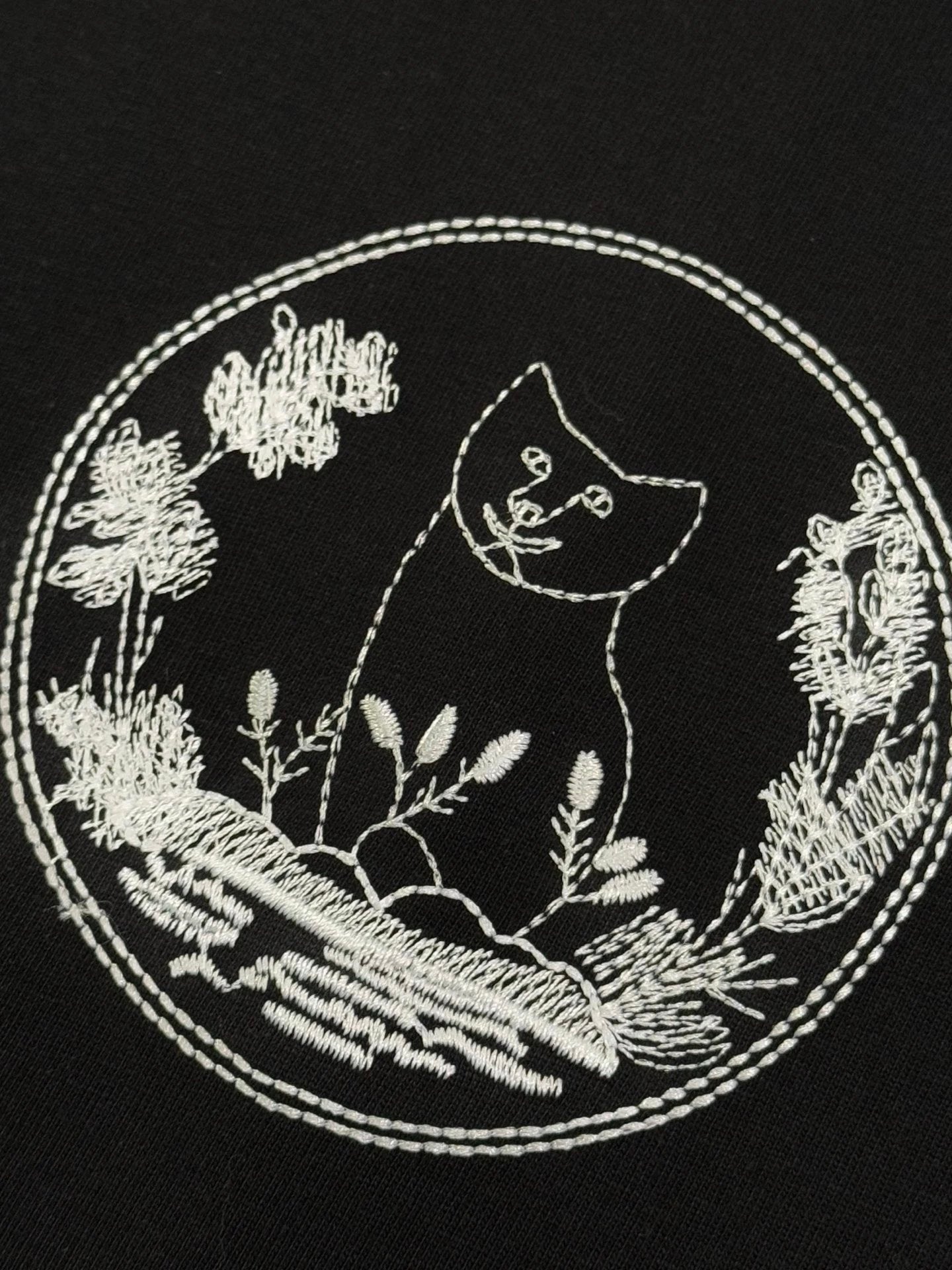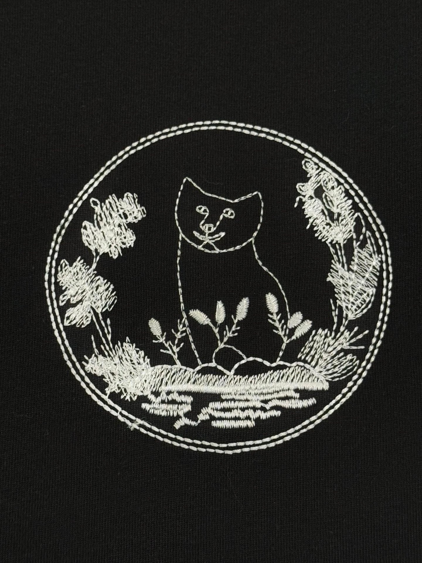 Dior collaboration cat embroidery short-sleeve T-shirt made of custom washed cotton fabric, weight 280g, 32s double yarn combed pure cotton fabric.The front and back panels are made with high-density embroidery craftsmanship, layered with three-dimensional plush cat outlines, featuring four-thread dense edges and double-needle chain stitching at the seams that can withstand washing machine drum beating. The neckline uses double-thread edging techniques with custom accessories and complete three-label certification, suitable for both men and women!
