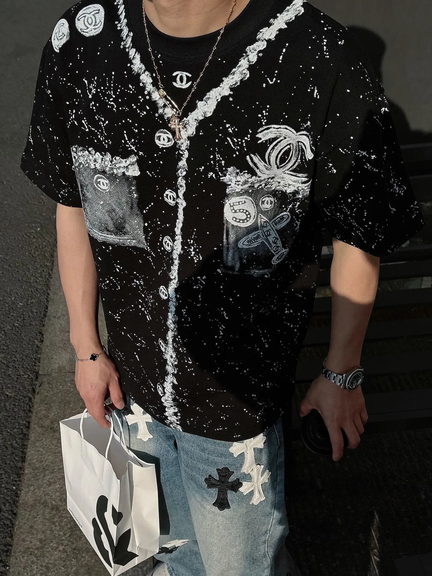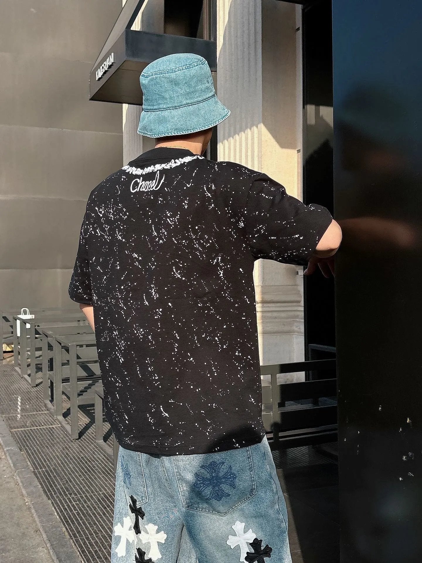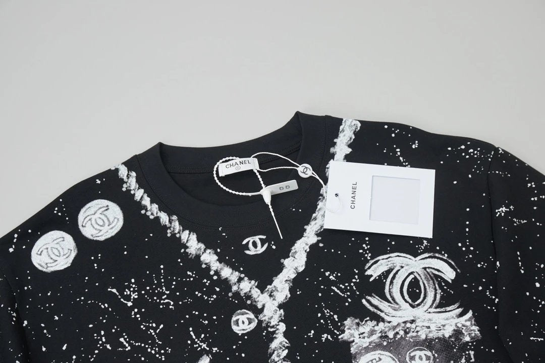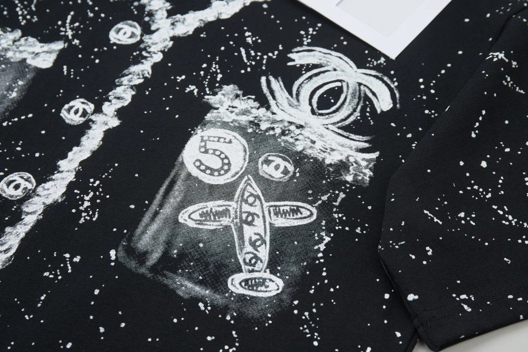 Chanel T-shirt Front and Back Graffiti Painting Print logo round Neck Short Sleeve25ss New Pure Cotton Unisex Style T T-shirt OS Loose Fit Base Shirt Half Sleeve T-Shirt Top Half Sleeve