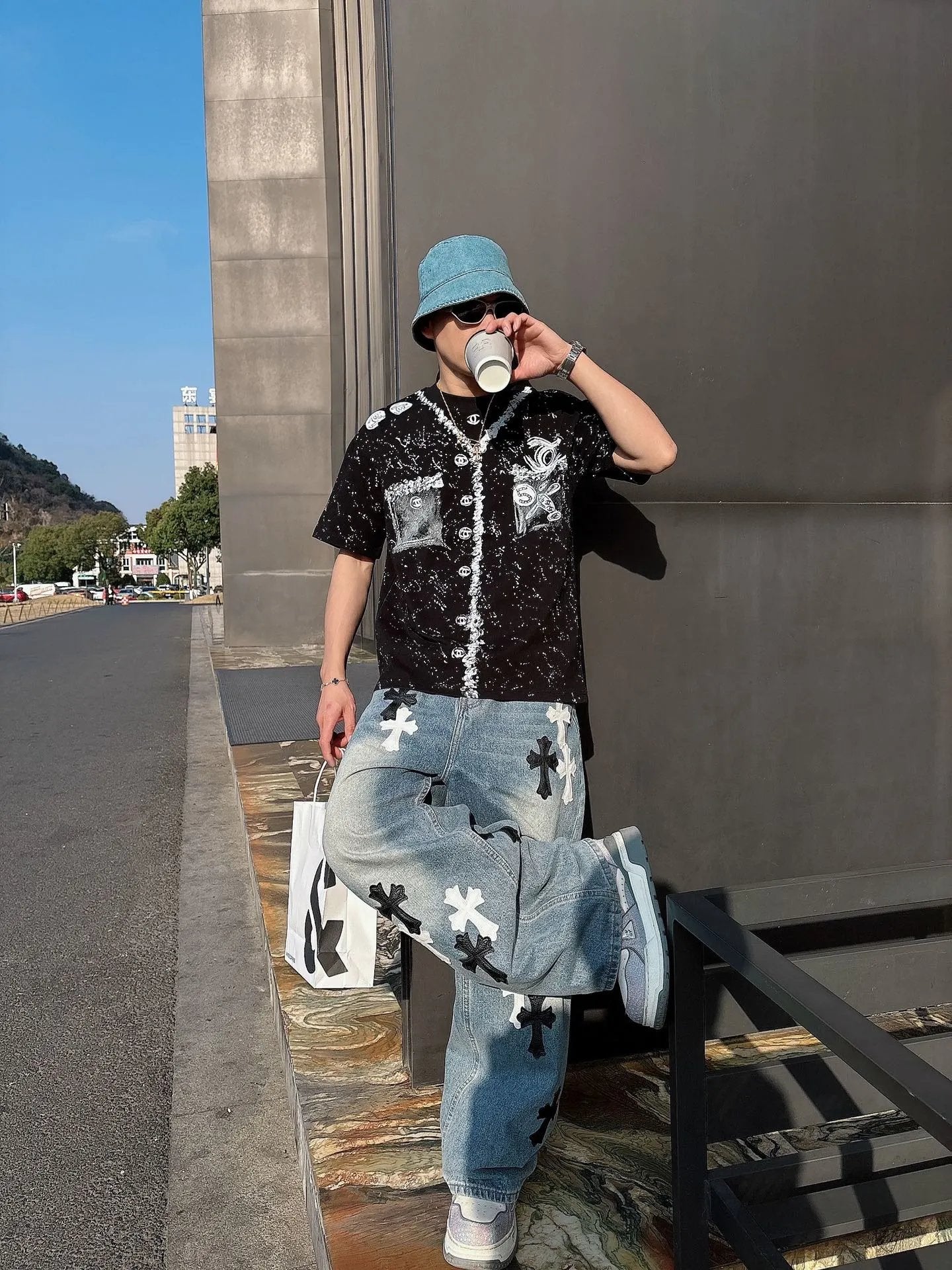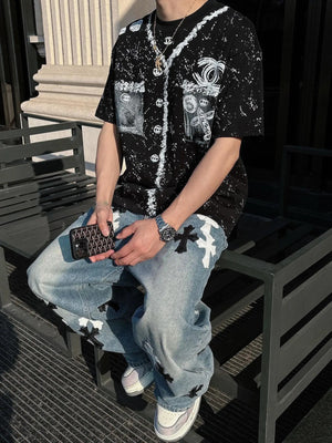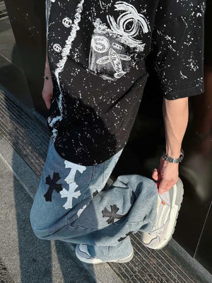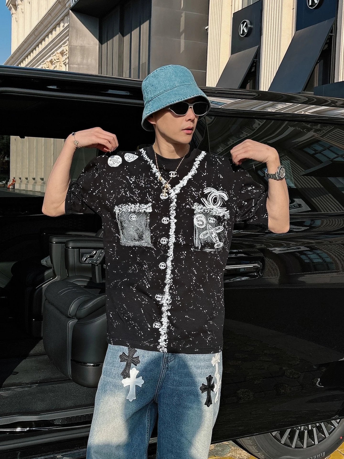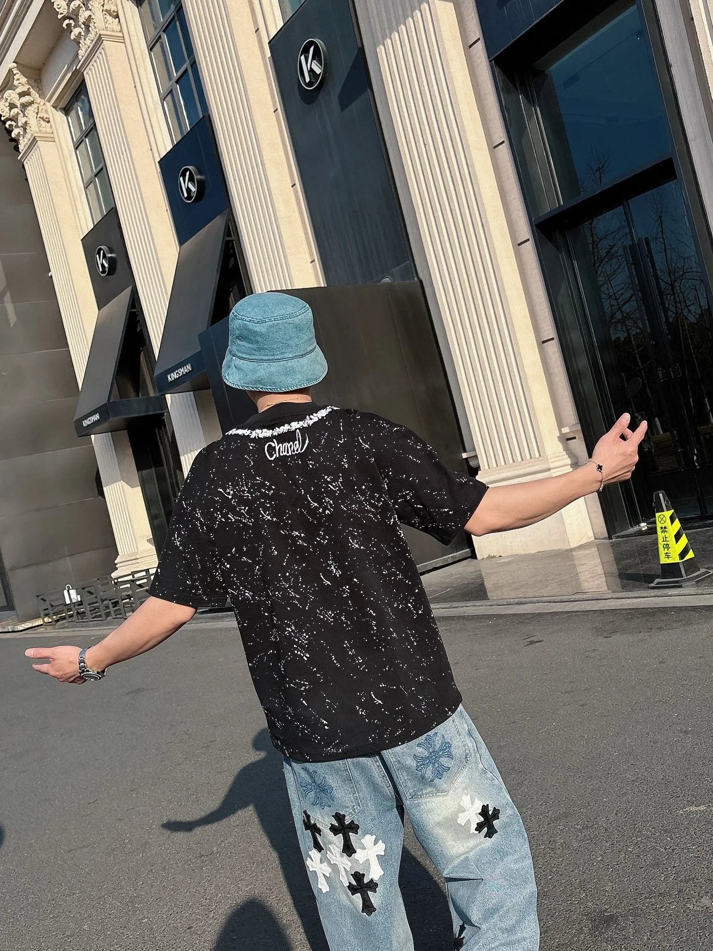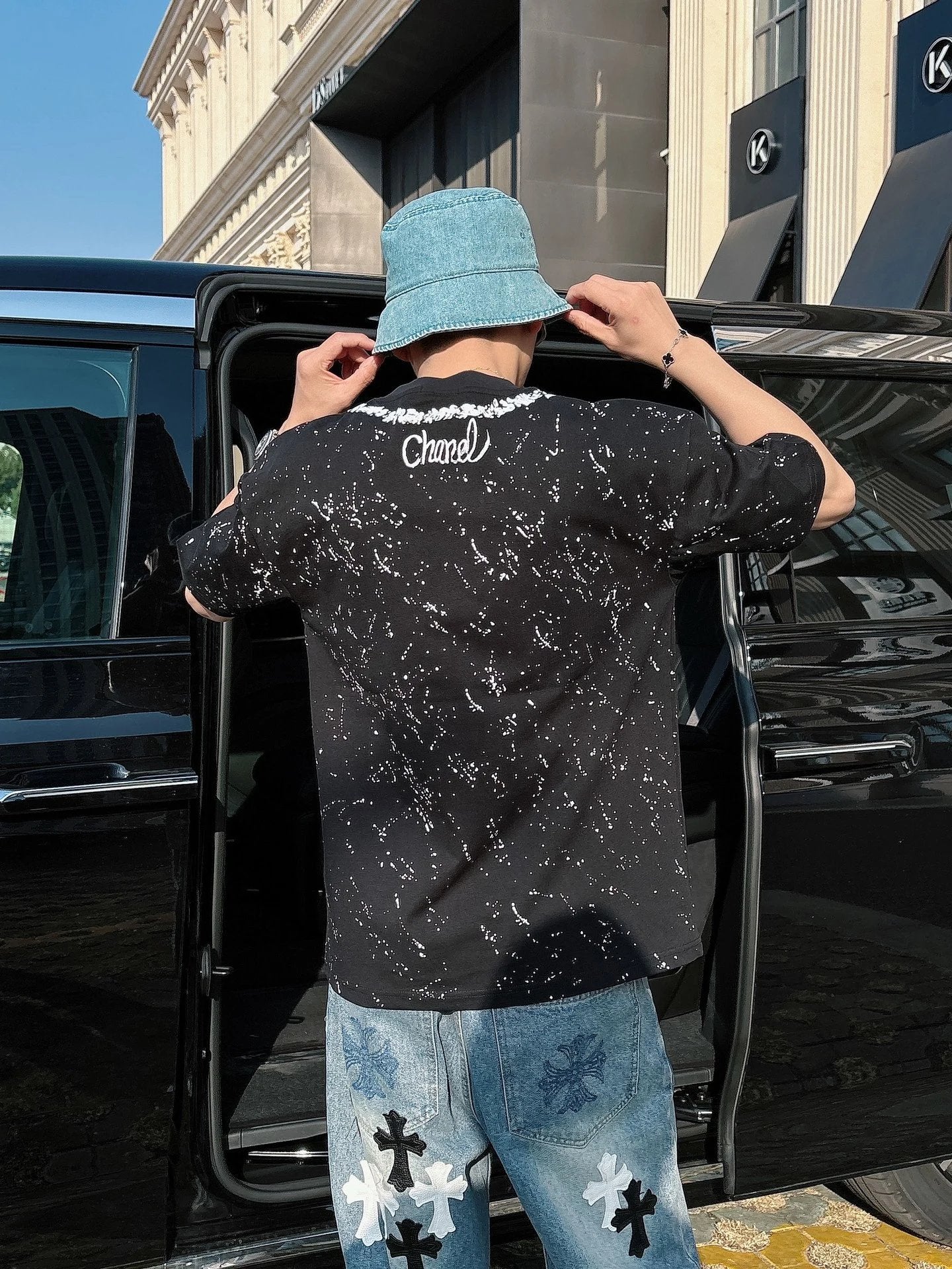 Chanel T-shirt Front and Back Graffiti Painting Print logo round Neck Short Sleeve25ss New Pure Cotton Unisex Style T T-shirt OS Loose Fit Base Shirt Half Sleeve T-Shirt Top Half Sleeve