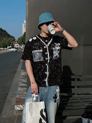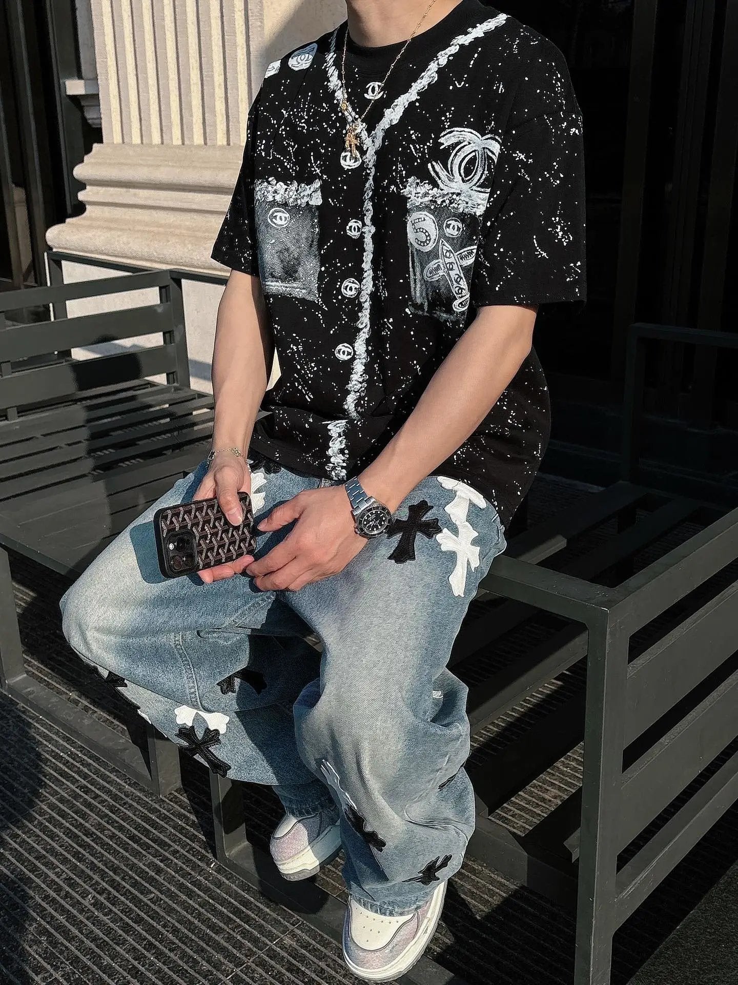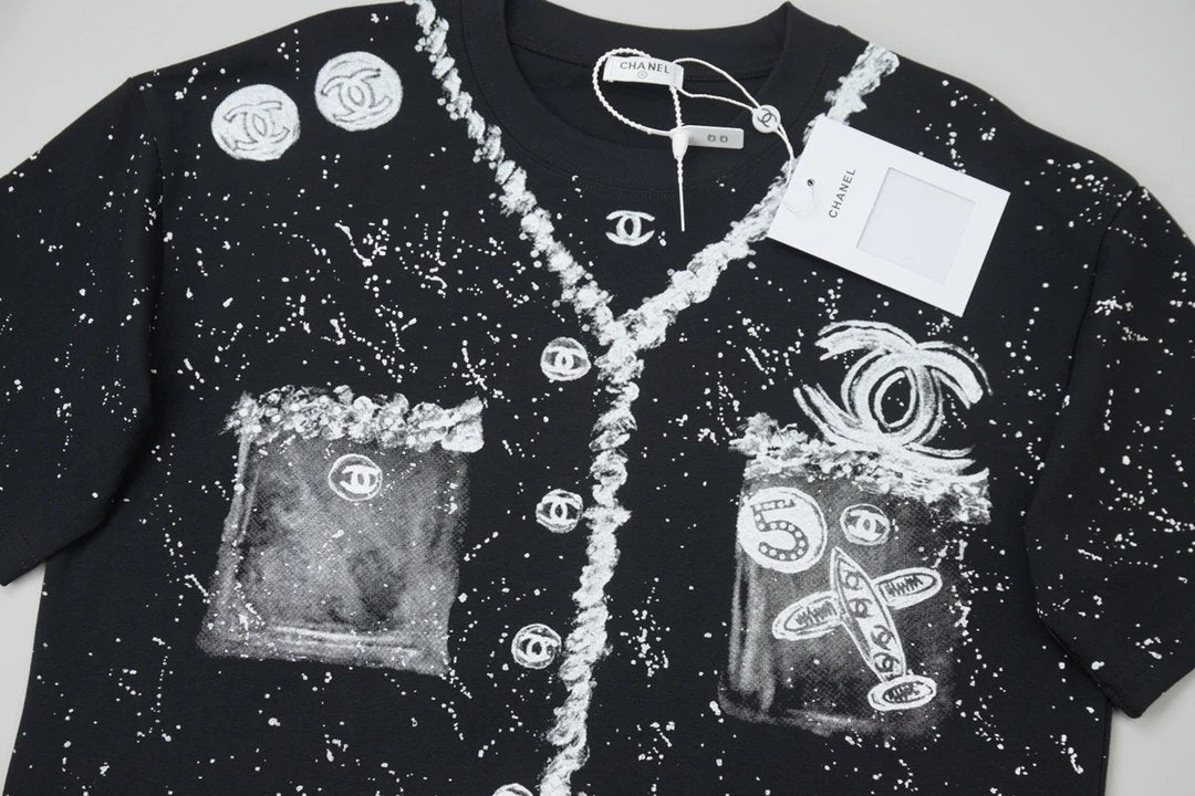 2025 Graffiti Watercolor Small Chanel Style Printed Short Sleeve