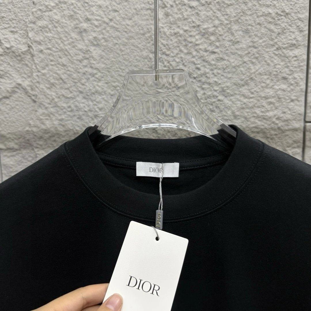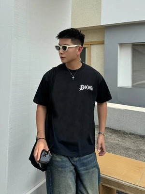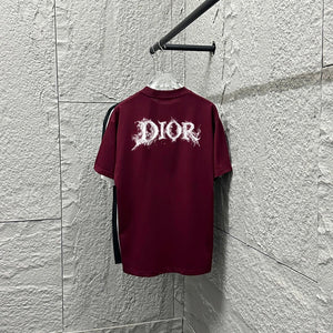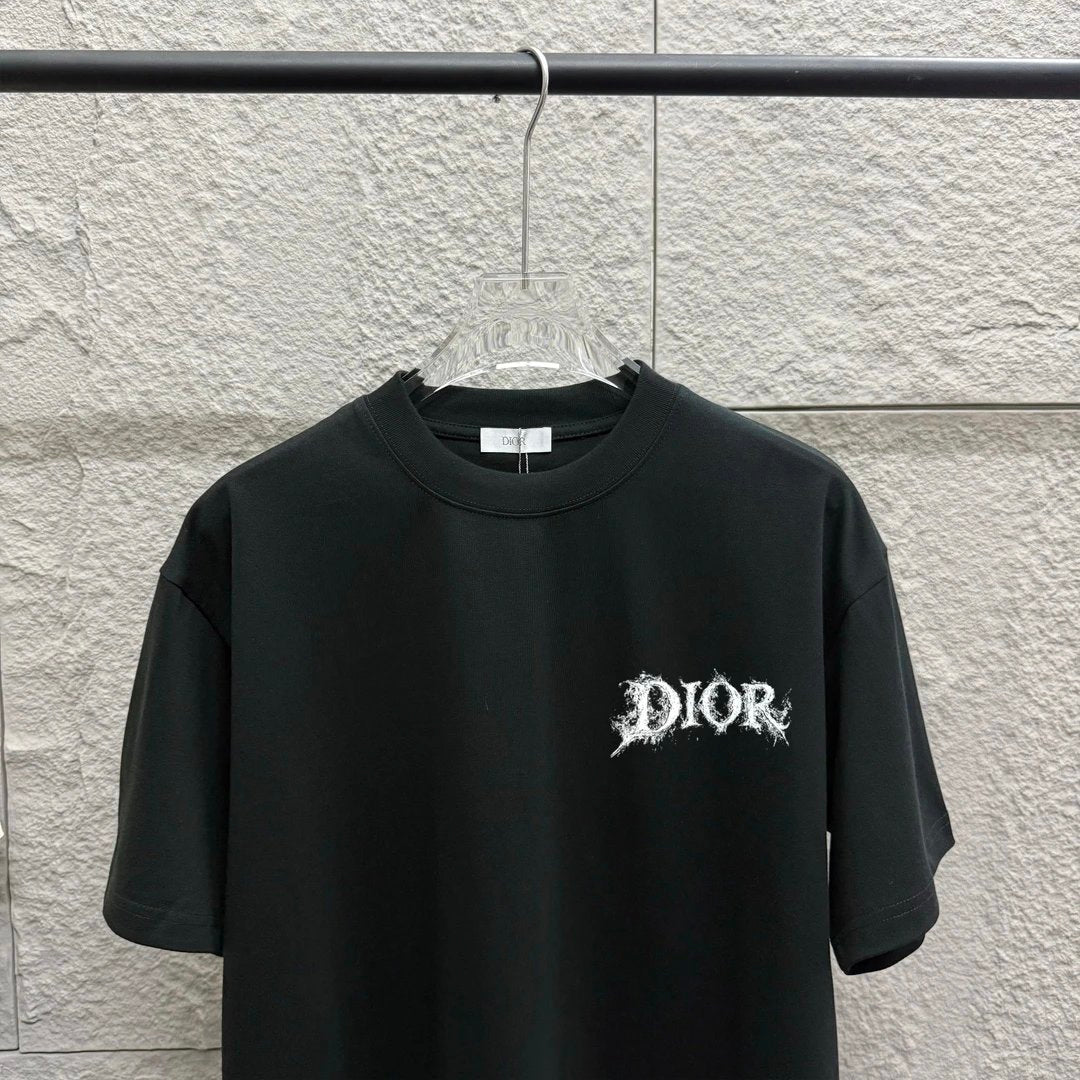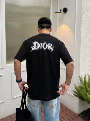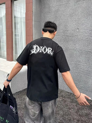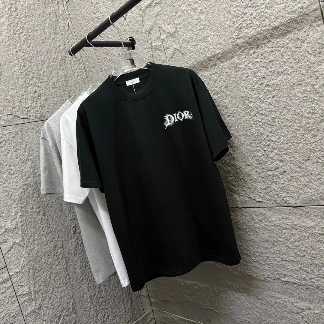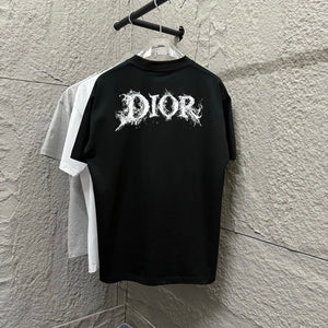 Dior 2025 Spring/Summer New Classic Ink Splash Letter Print Front and Back Simple and Elegant Custom Double Yarn Plain Cotton Fabric Short Sleeve T-Shirt Unisex