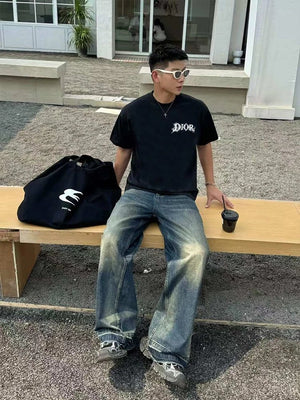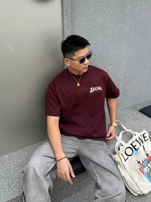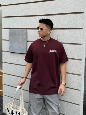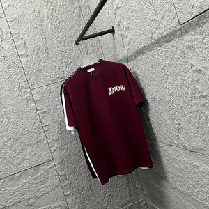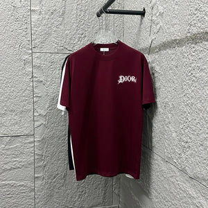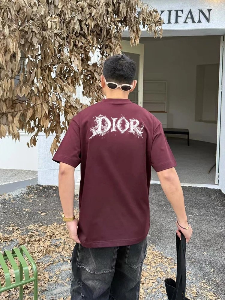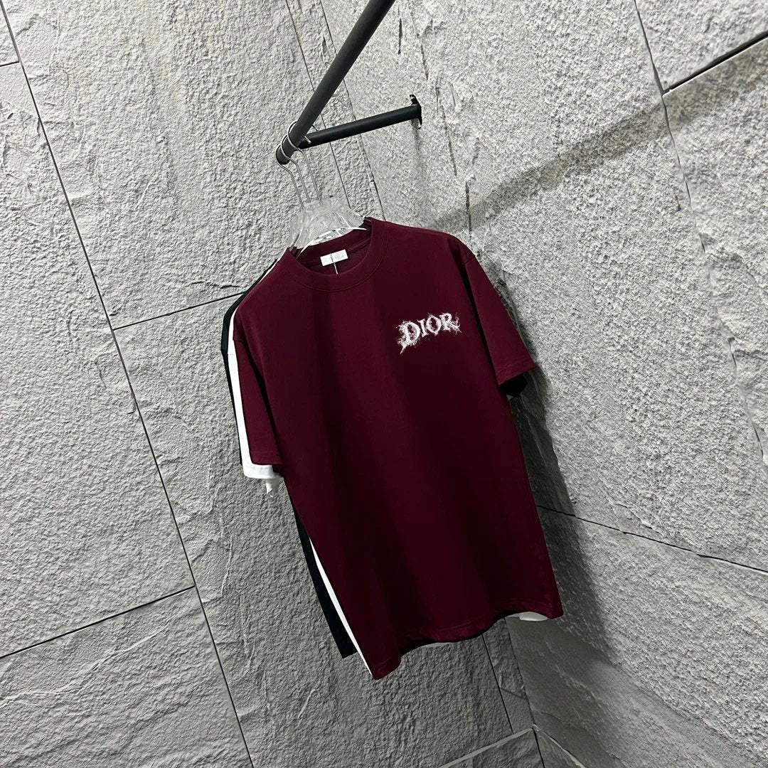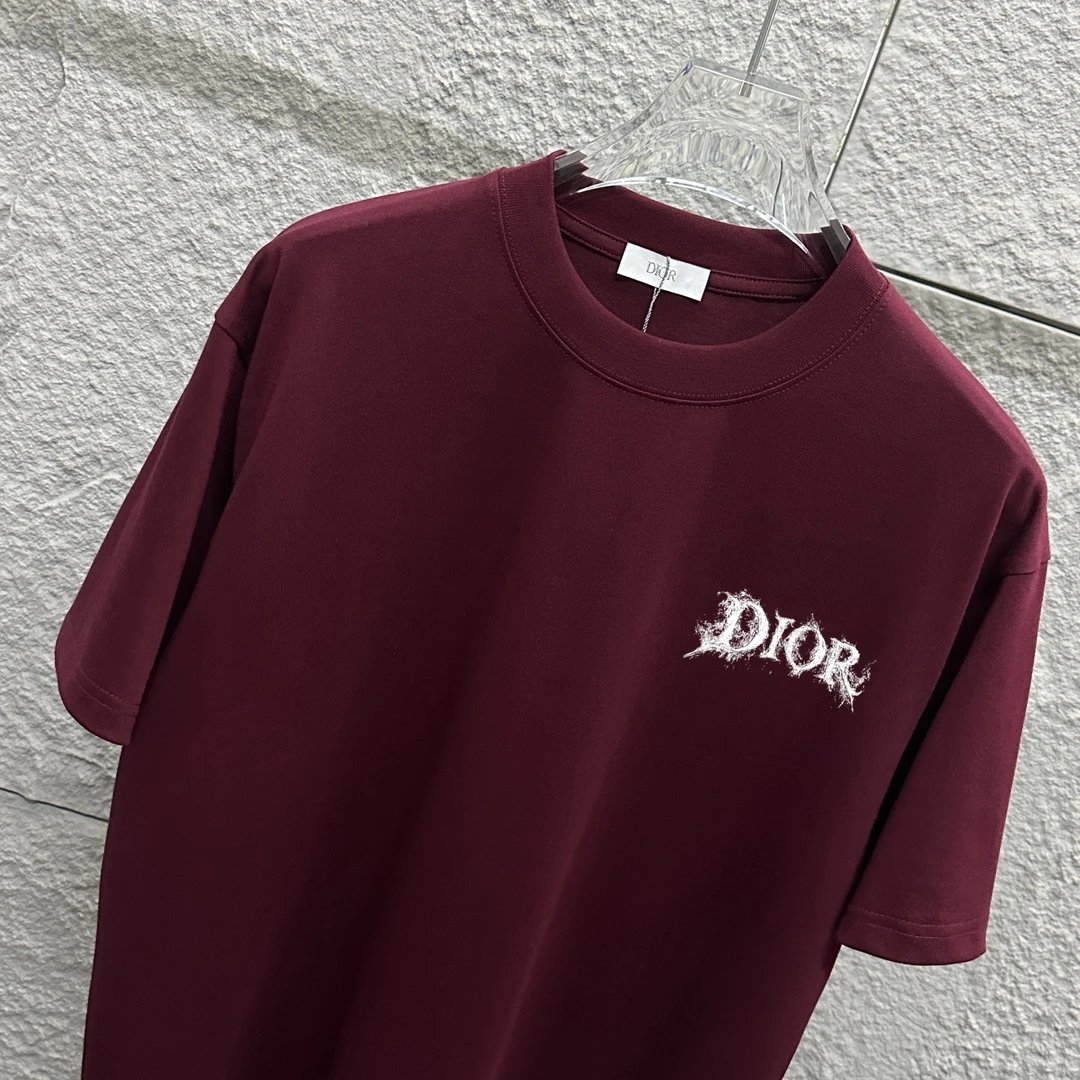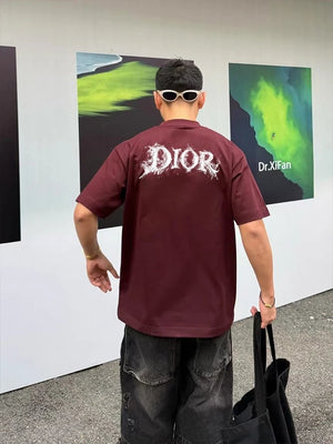Dior 2025 Spring/Summer New Classic Ink Splash Letter Print Front and Back Simple and Elegant Custom Double Yarn Plain Cotton Fabric Short Sleeve T-Shirt Unisex